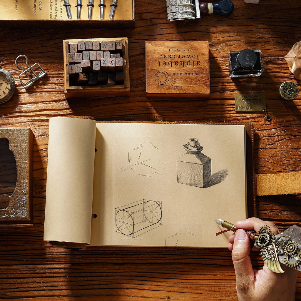 Invest in a leather bound sketchbook that will accompany your creative journey for years to come, developing a unique personality that reflects your experiences and style.