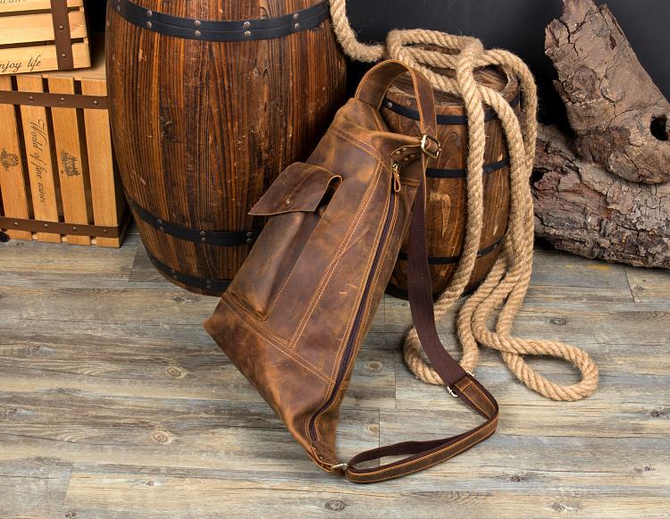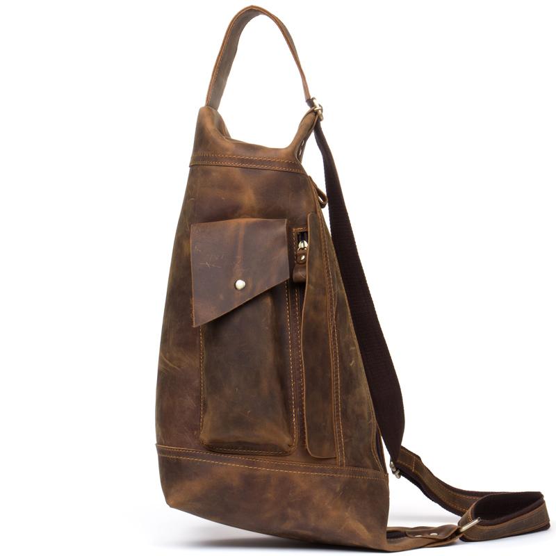 Style: Leather Mens Cool Sling Bag Crossbody Bag Chest Bag for men