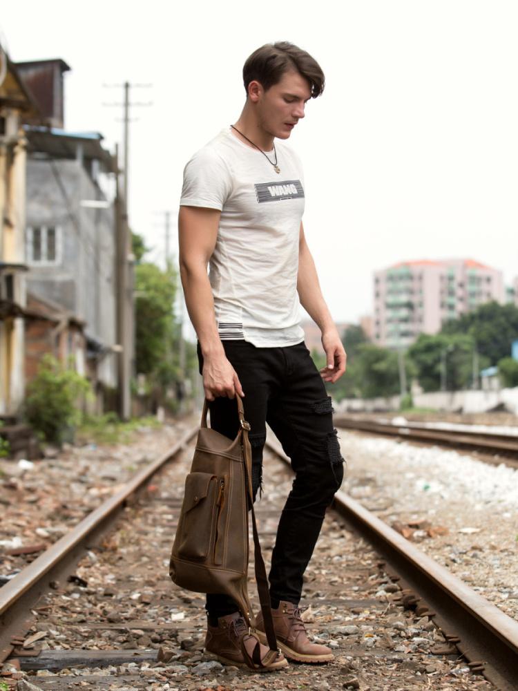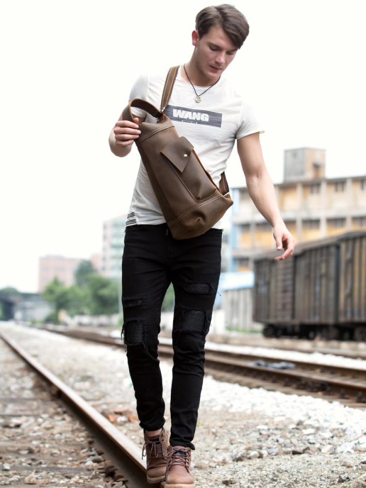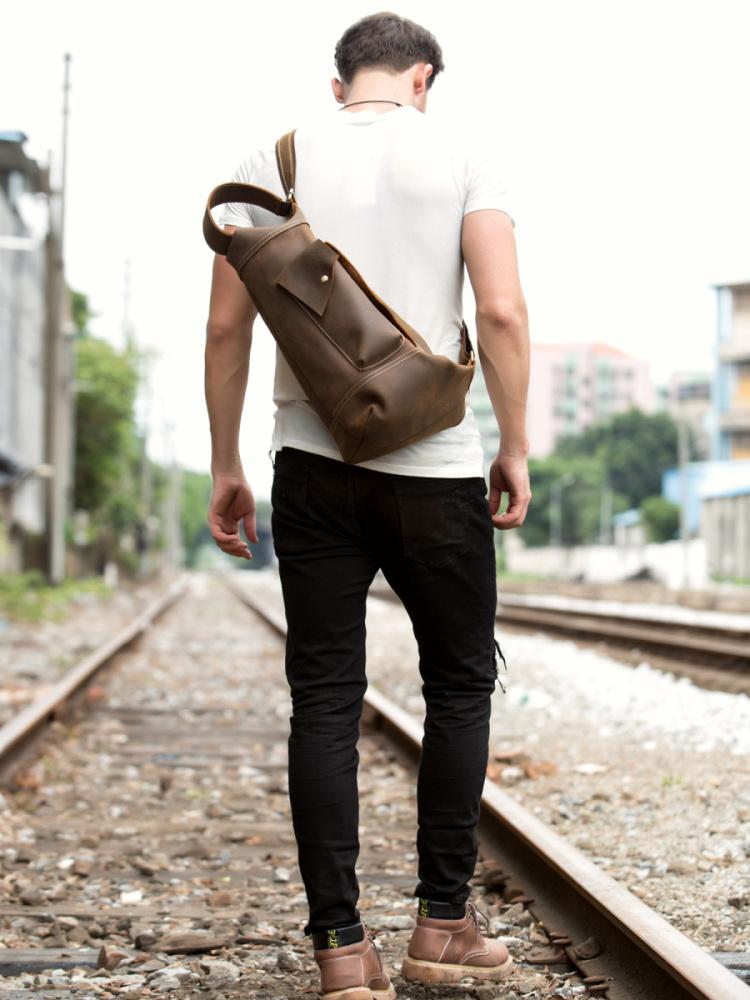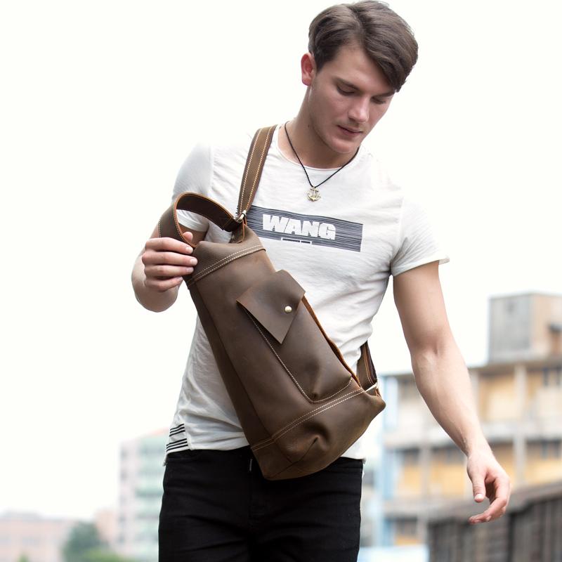 Design: Leather Mens Cool Sling Bag Crossbody Bag Chest Bag for men