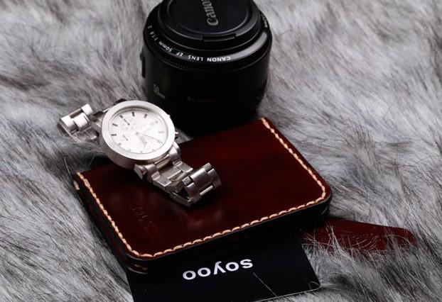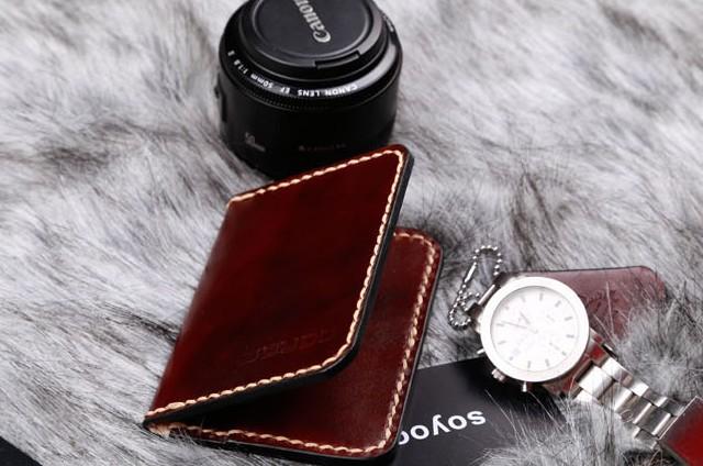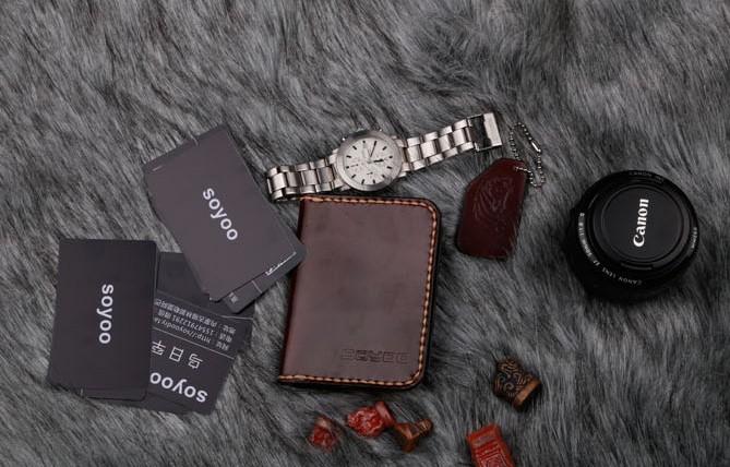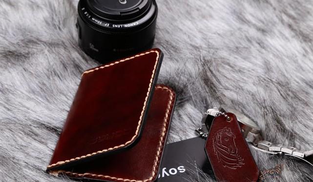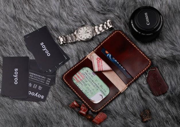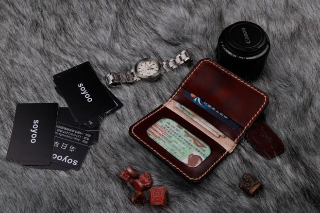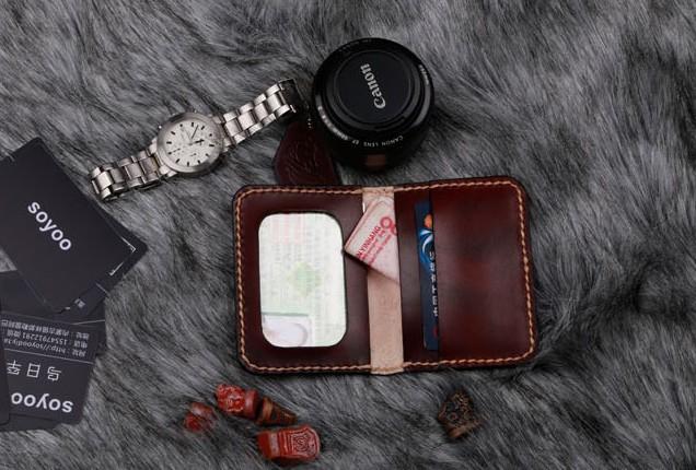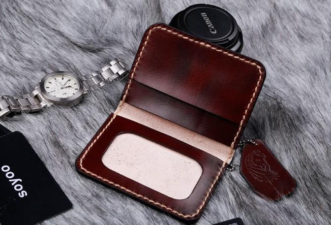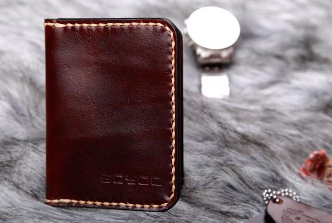 Design: Coffee Leather Mens Slim Front Pocket Wallets Leather Card Wallet for Men