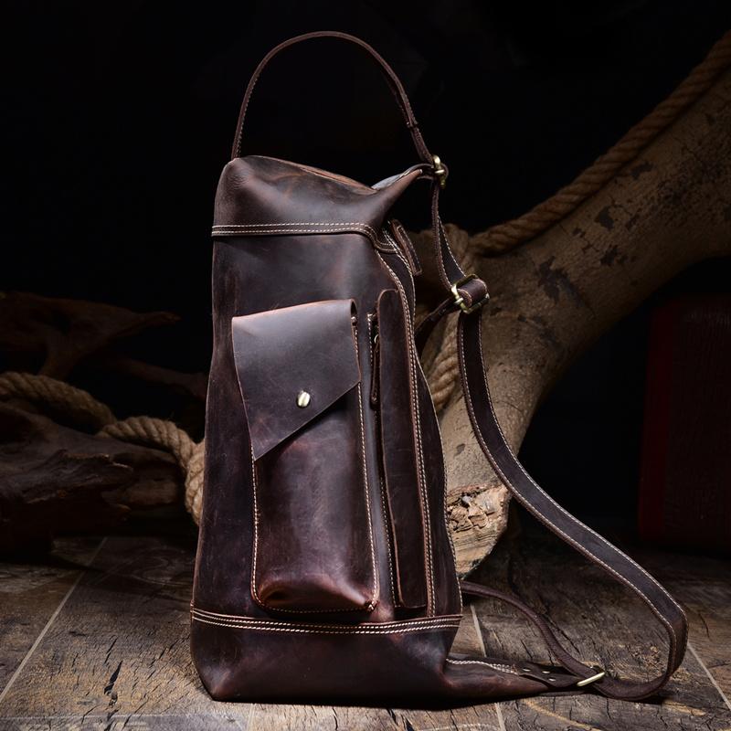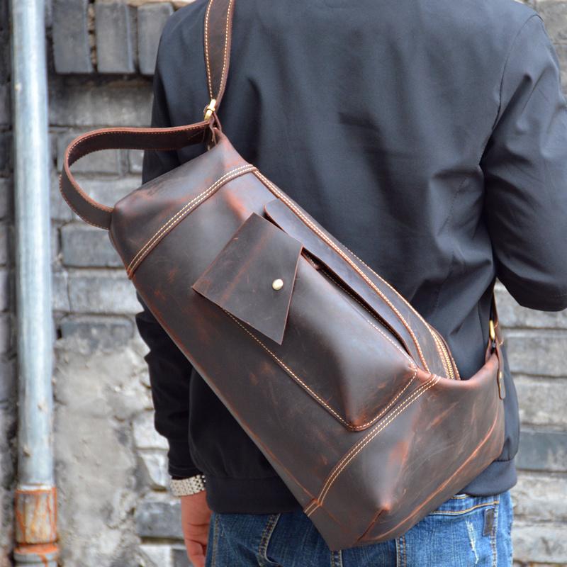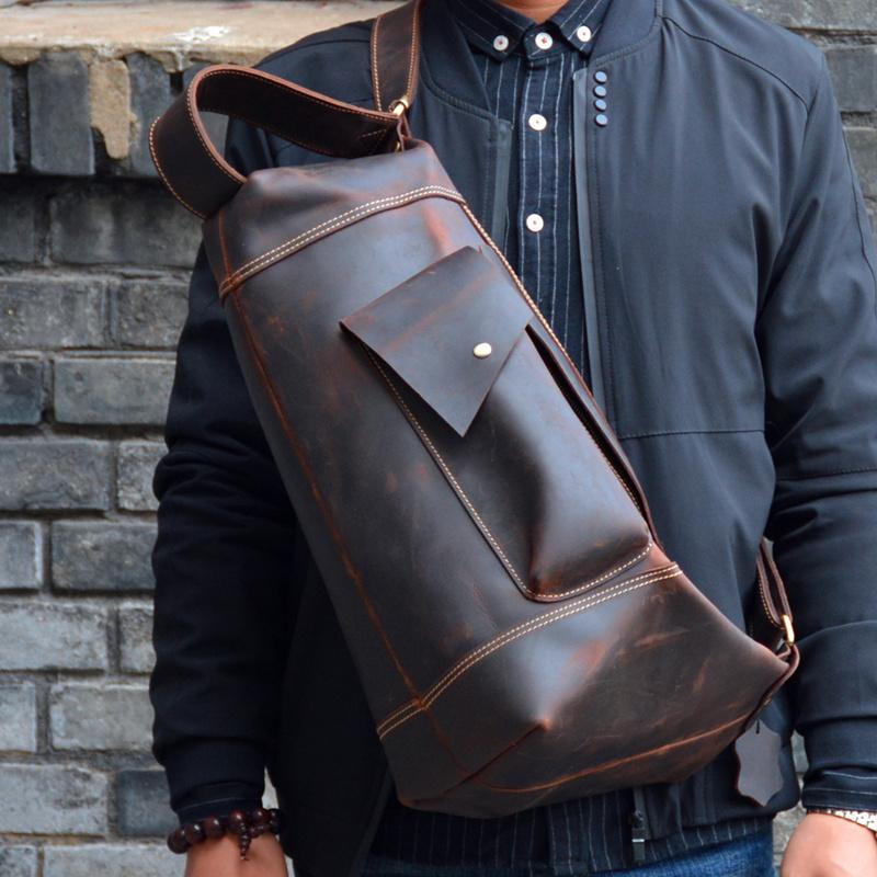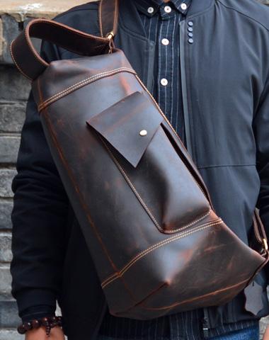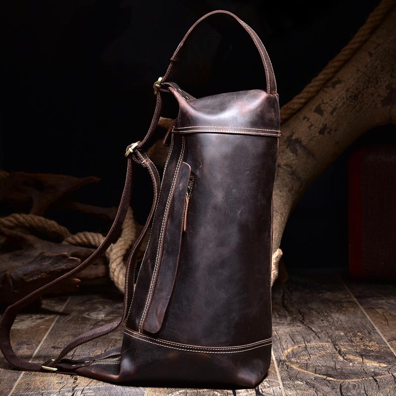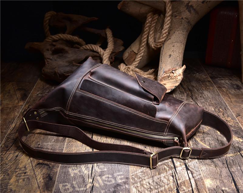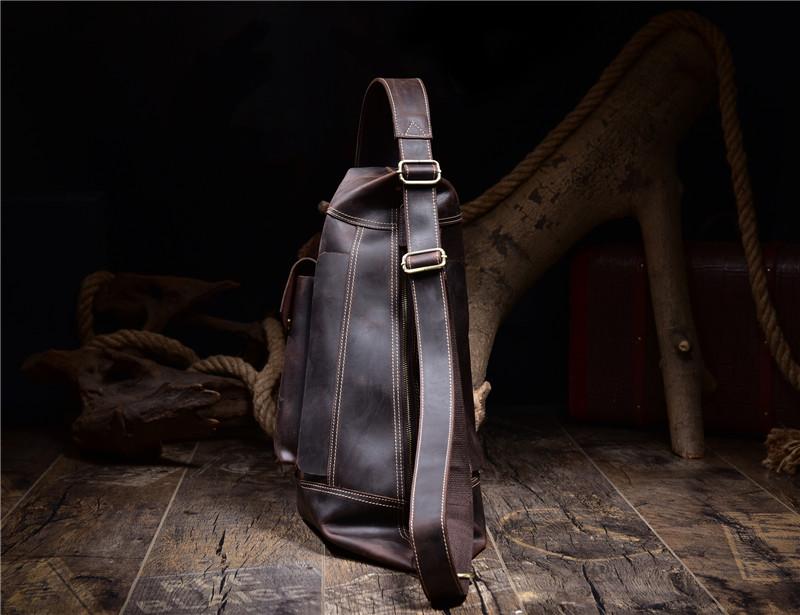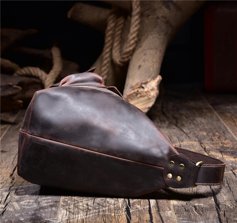 Design: Cool Leather Mens Sling Bag Vintage Chest Bag Crossbody Backpack For Men