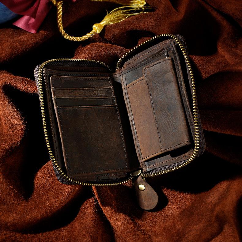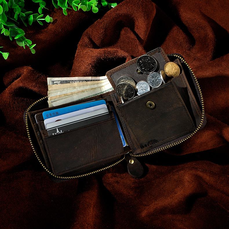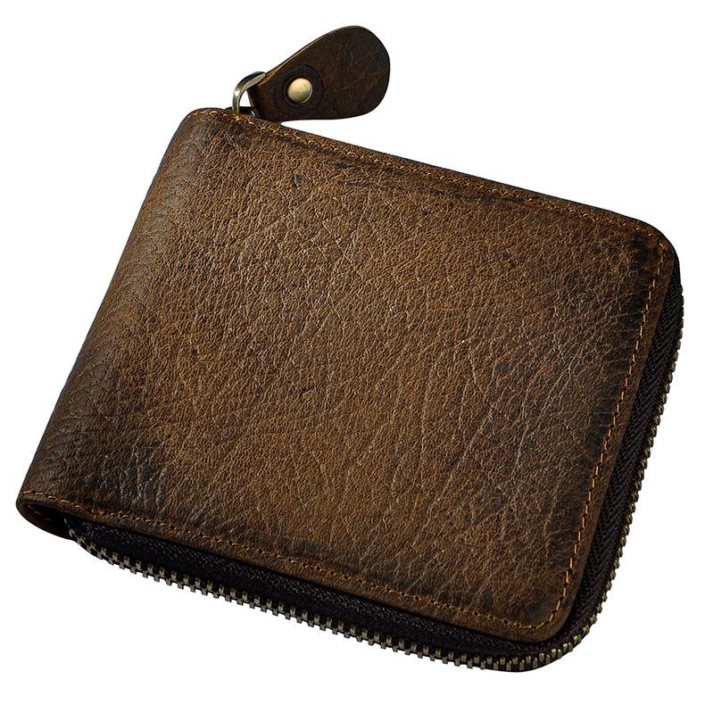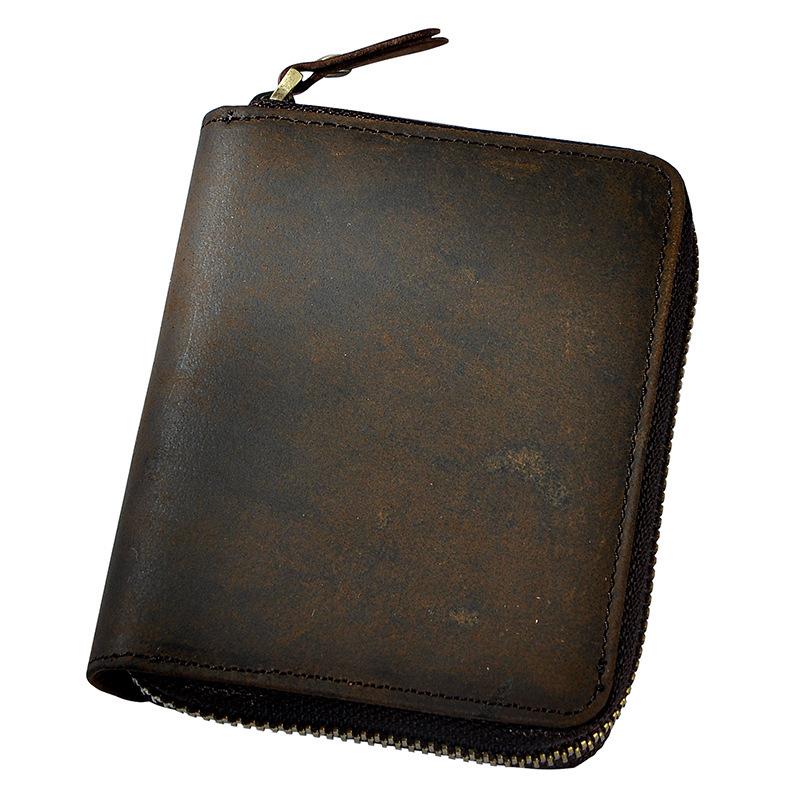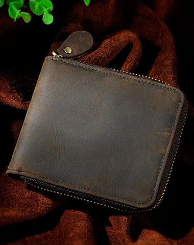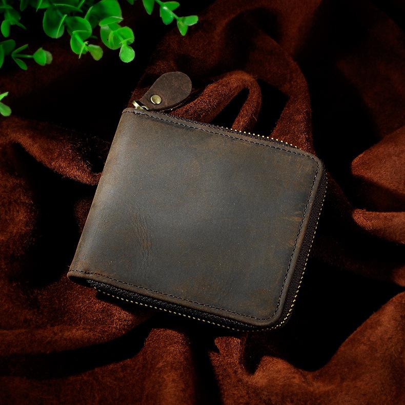 Design: Leather Small Mens Wallet Zipper Bifold Vintage Wallet for Men