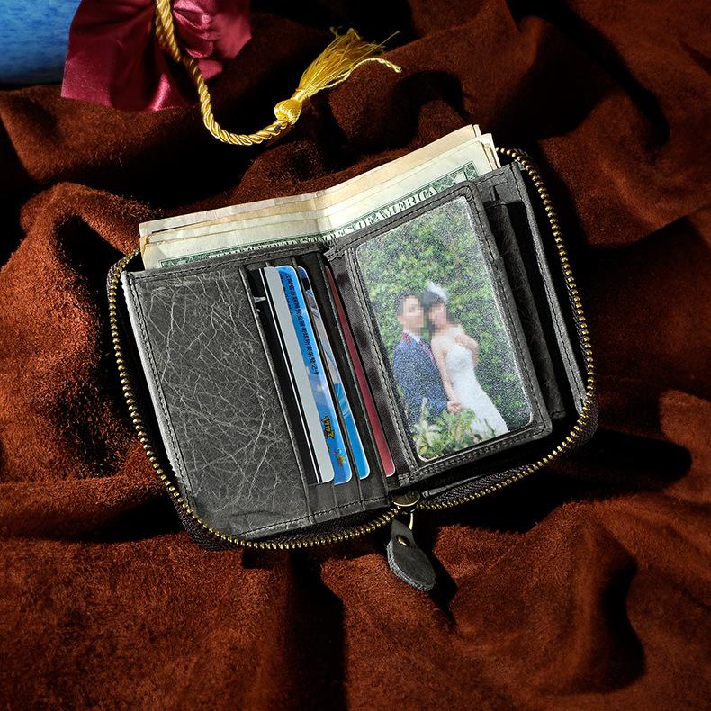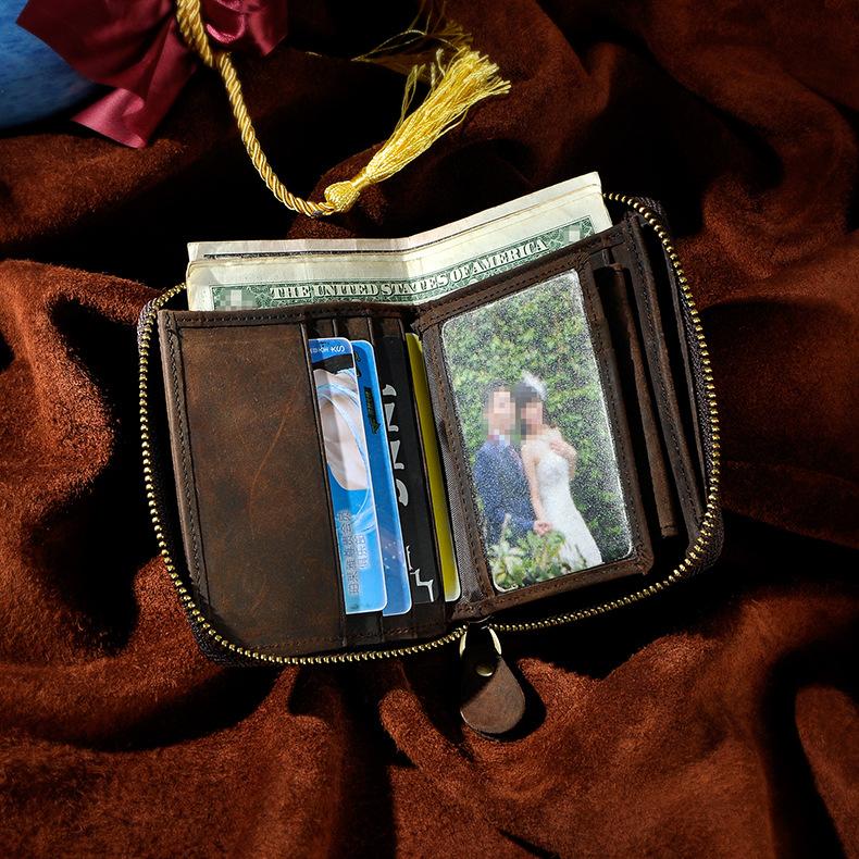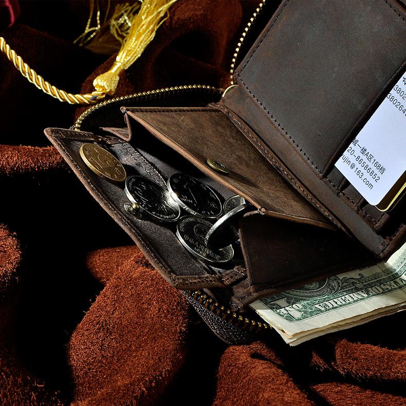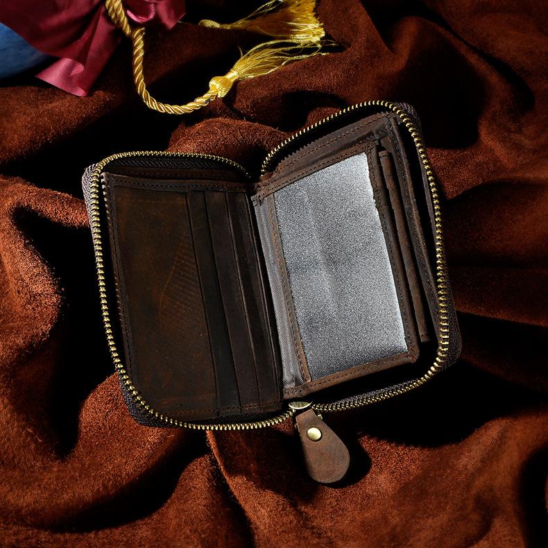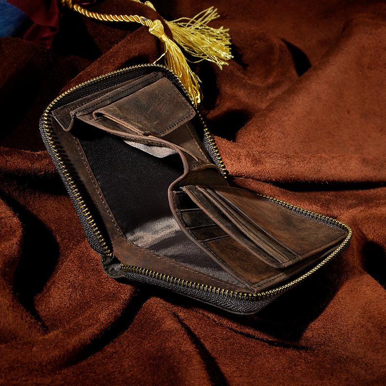 Design: Leather Small Mens Wallet Zipper Bifold Vintage Wallet for Men