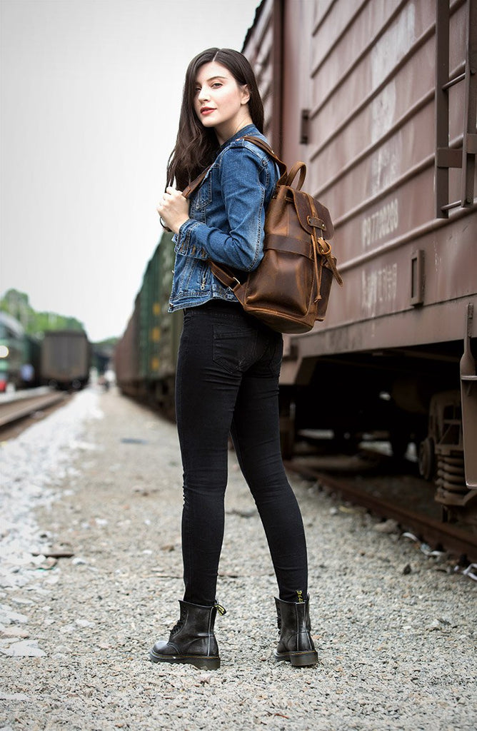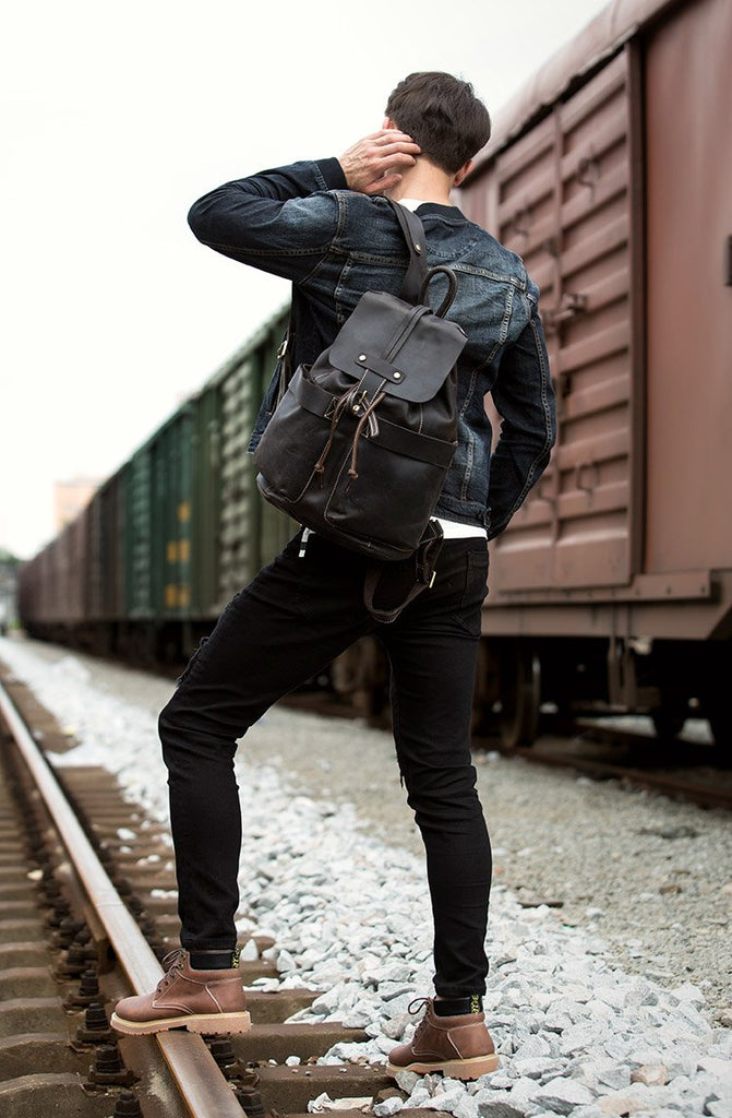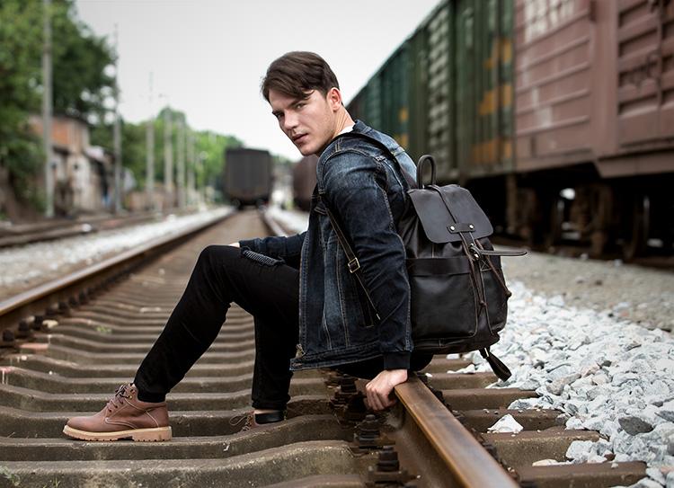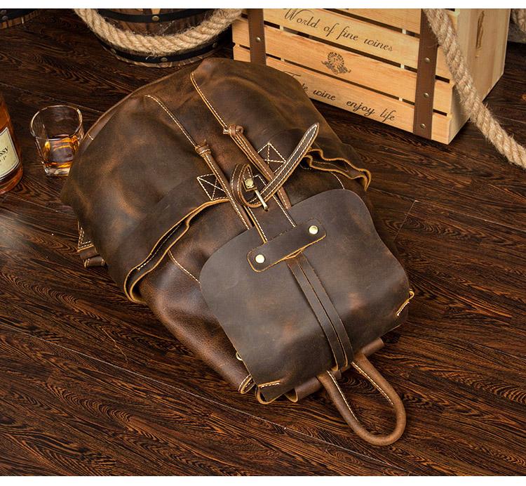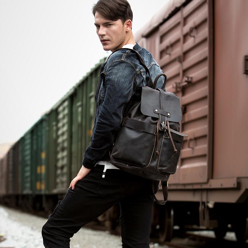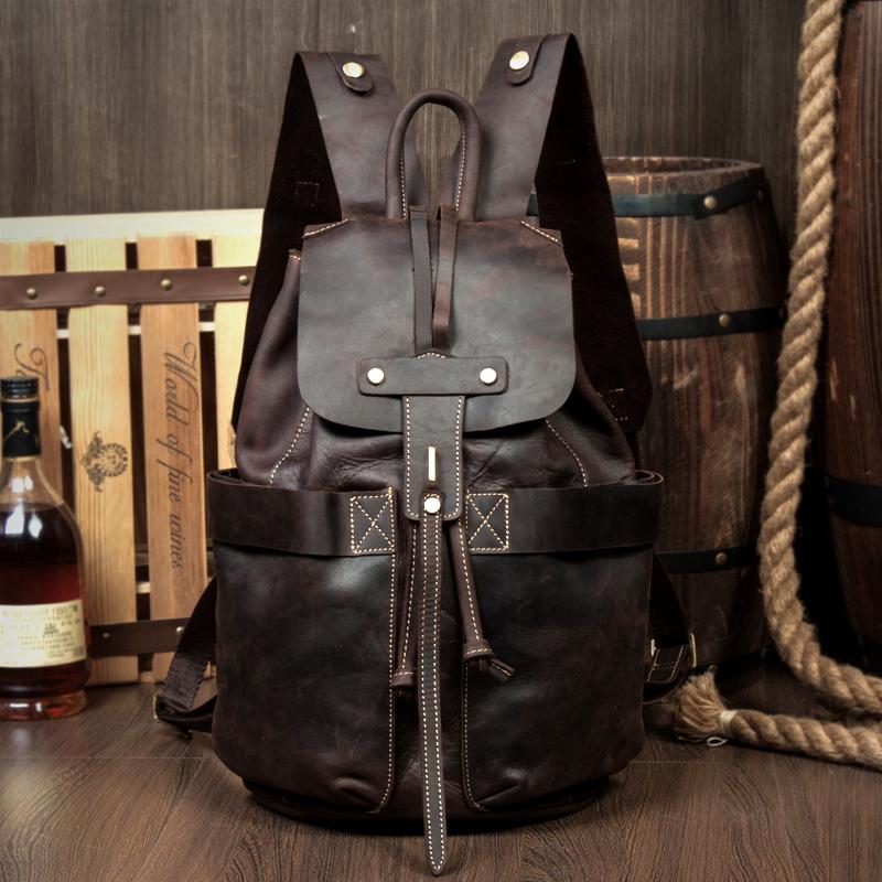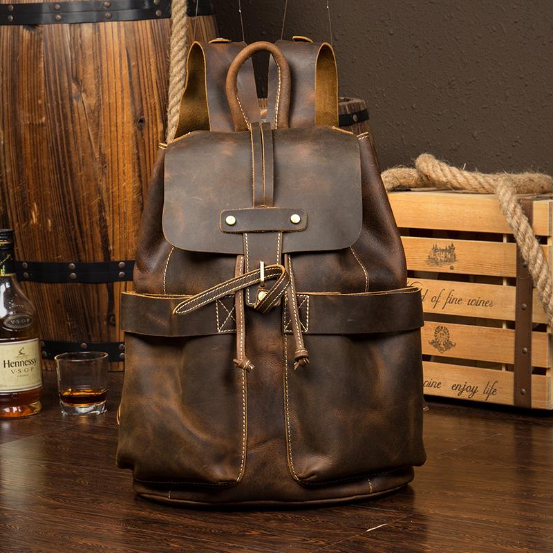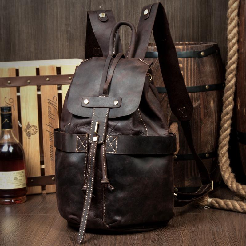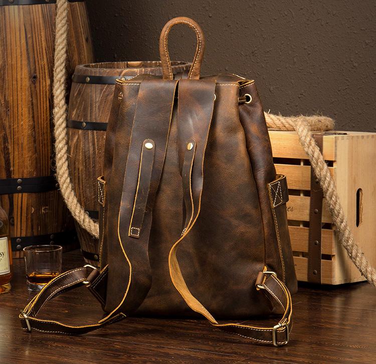 Style: Light Brown Casual Mens Leather 15-inch Computer Backpack Dark Brown Travel Backpacks School Backpacks for men