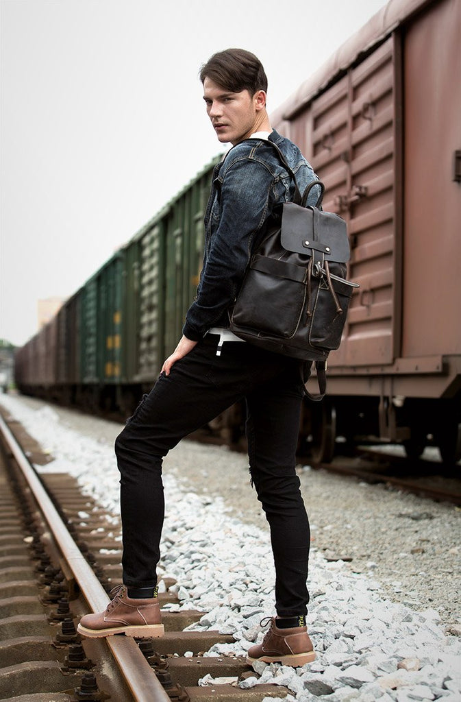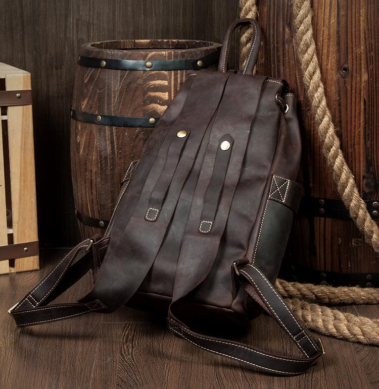 Design: Light Brown Casual Mens Leather 15-inch Computer Backpack Dark Brown Travel Backpacks School Backpacks for men