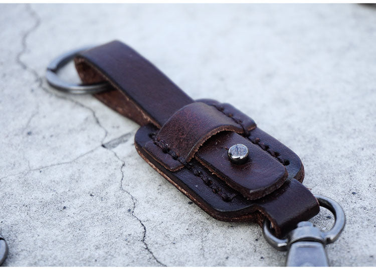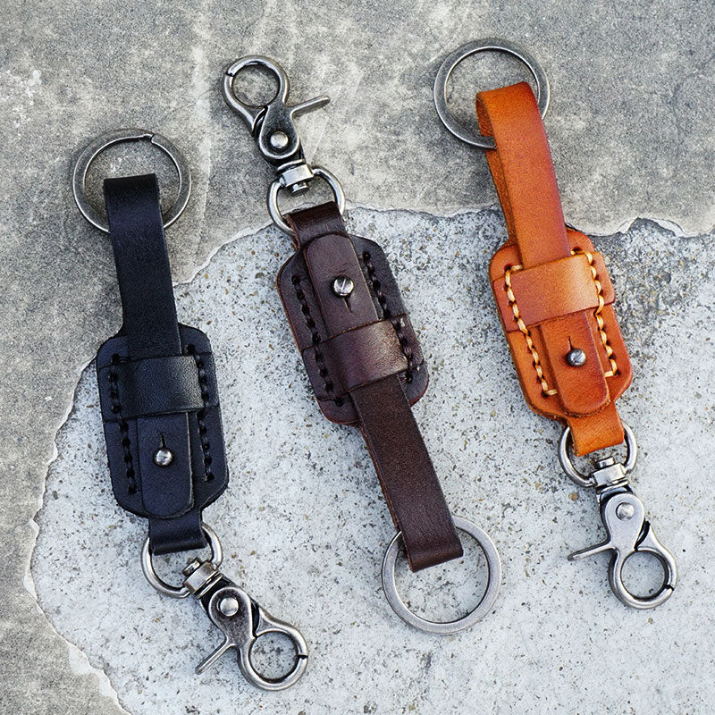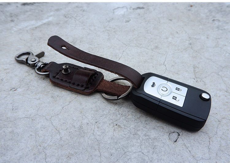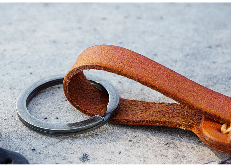 Men's Leather Keychains Cool Keychains for Car Keys Handmade Leather Key Fob