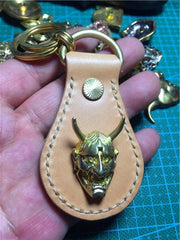 Moto Leather&Brass Keyrings Biker KeyChain Dragon Leather Keyring Beige Moto Key Holders Key Chain Key Ring for Men