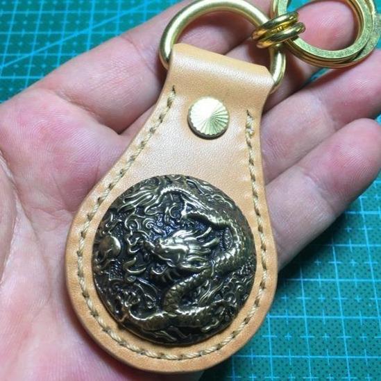 Design: Moto Leather&Brass Keyrings Biker KeyChain Leather Keyring Beige Moto Key Holders Key Chain Key Ring for Men