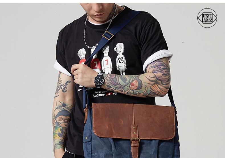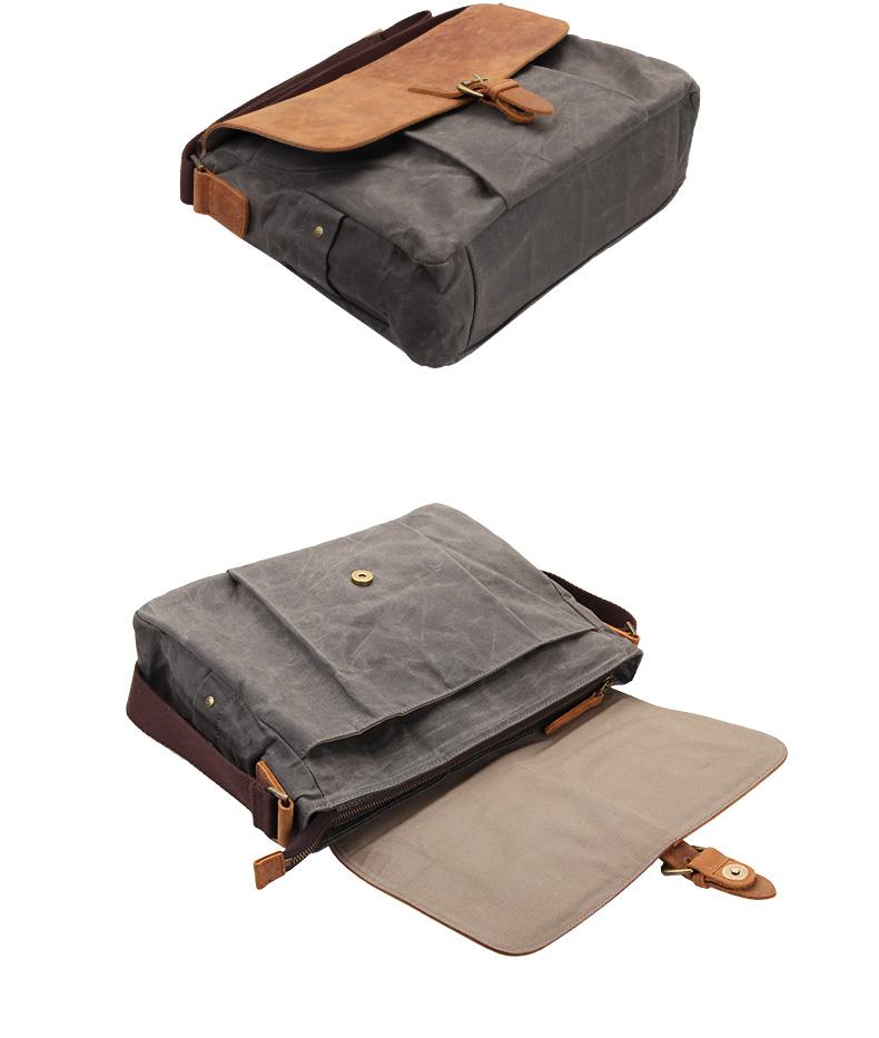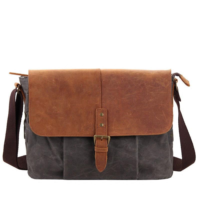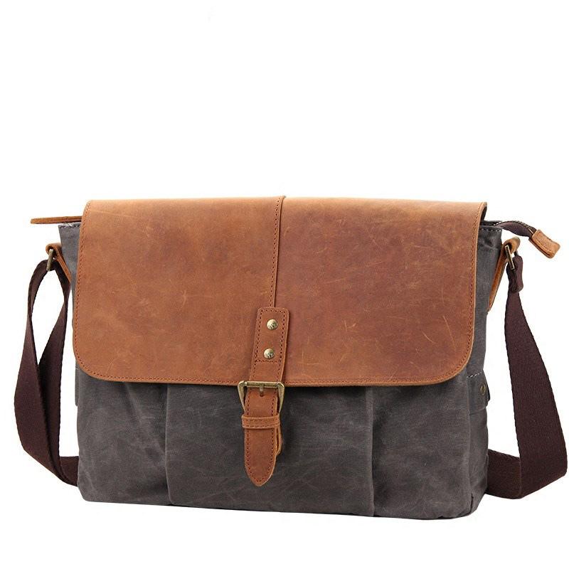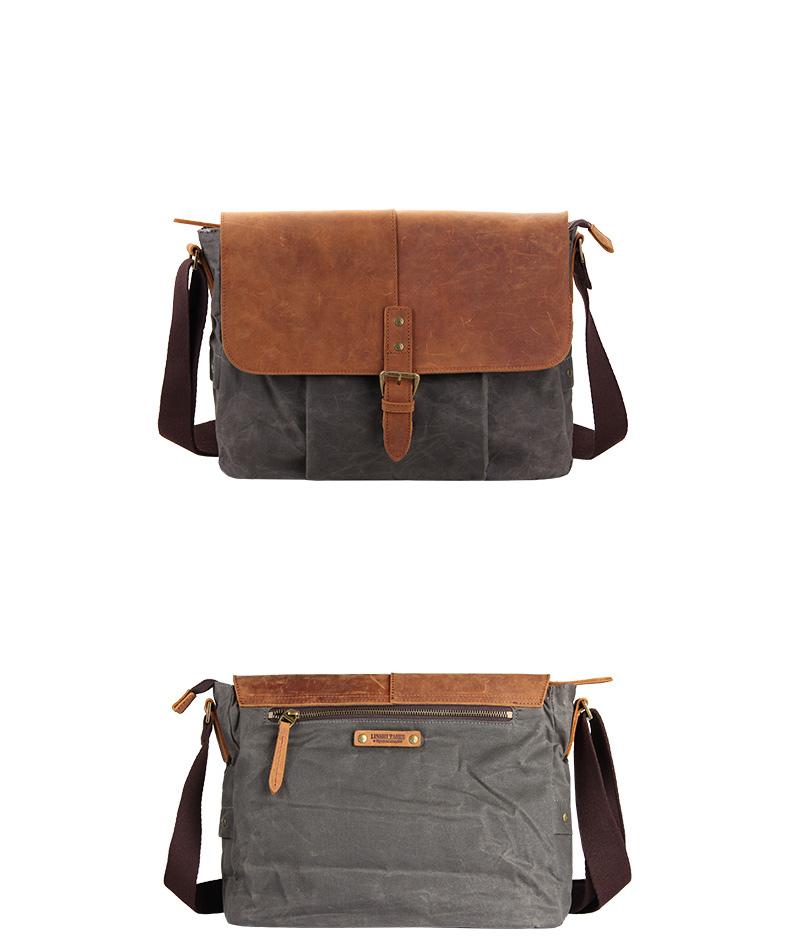 Design: Navy Blue Leather Canvas Mens Casual Light Gray Briefcase Shoulder Bag Messenger Bags Casual Courier Bags for Men