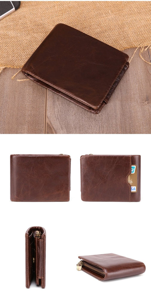 Design: Vintage Brown Trifold Leather Men's Small Wallet RFID Black billfold Wallet For Men
