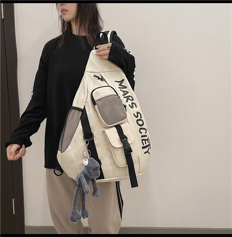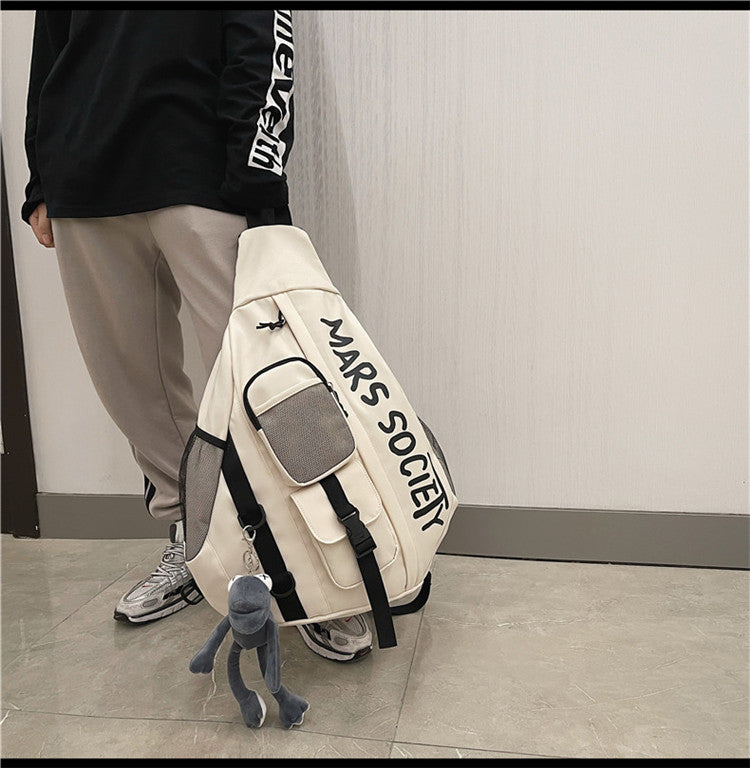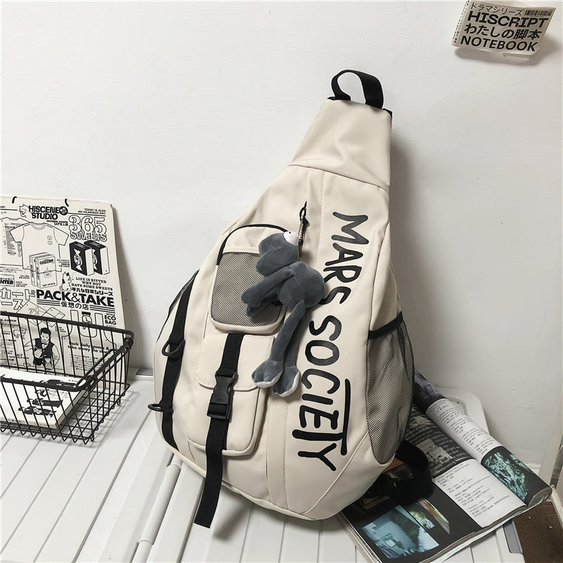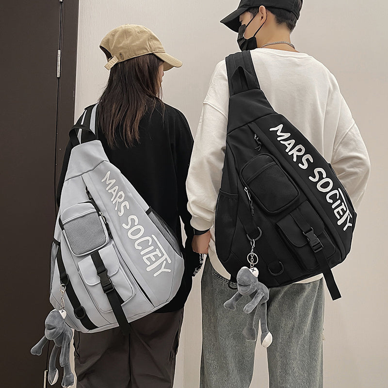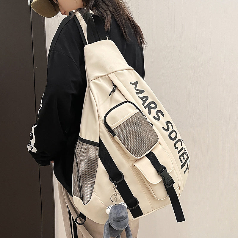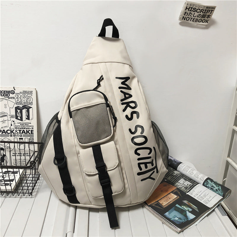 Crafted from high-quality nylon, this sling bag boasts a waterproof construction, ensuring your items remain dry and protected in all weather conditions. The bag is available in three classic colors: white, black, and gray. These neutral shades offer a timeless appeal, making the bag a versatile addition to any wardrobe and suitable for various occasions.