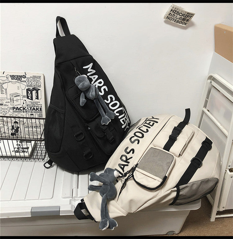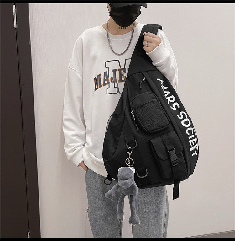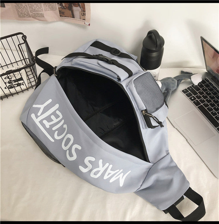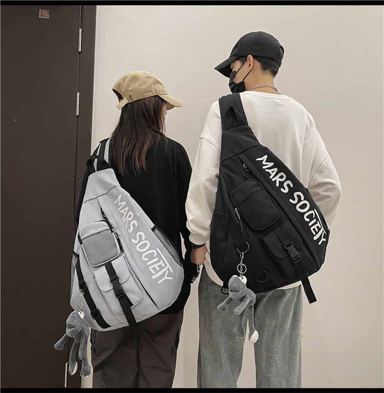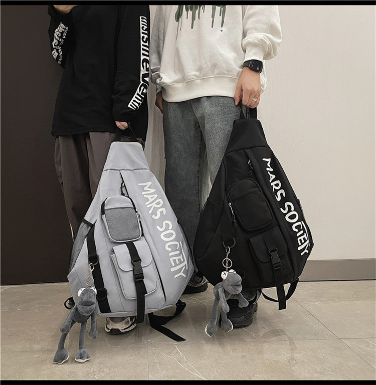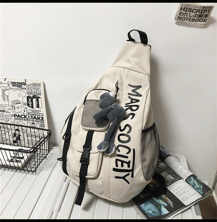 Crafted from high-quality nylon, this sling bag boasts a waterproof construction, ensuring your items remain dry and protected in all weather conditions. The bag is available in three classic colors: white, black, and gray. These neutral shades offer a timeless appeal, making the bag a versatile addition to any wardrobe and suitable for various occasions.