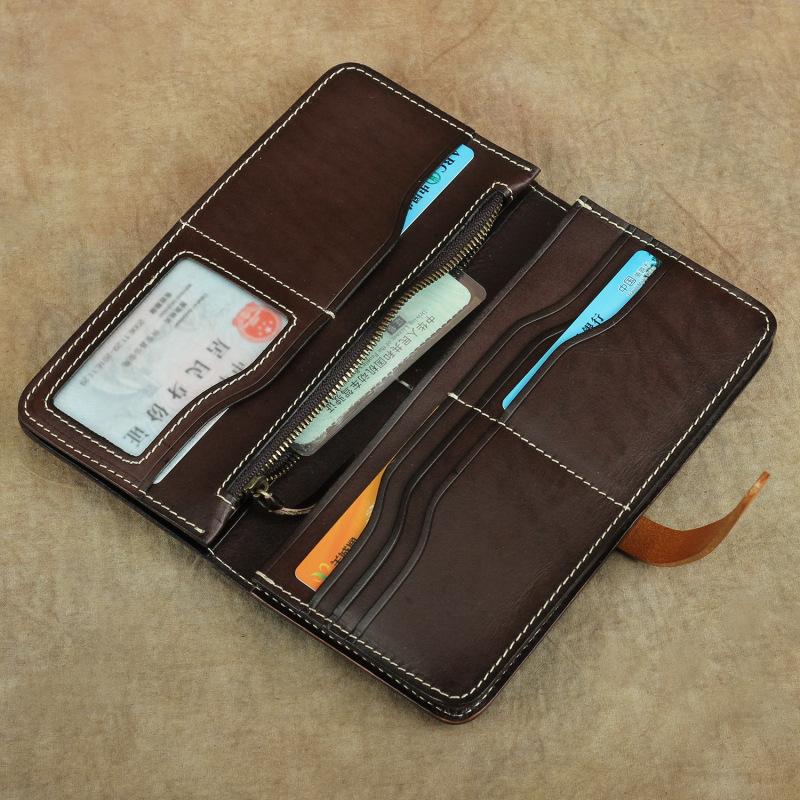 Design: Oil Waxed Mens Leather Long Wallet Bifold Long Wallets Card Wallet Clutch Wallet for Men