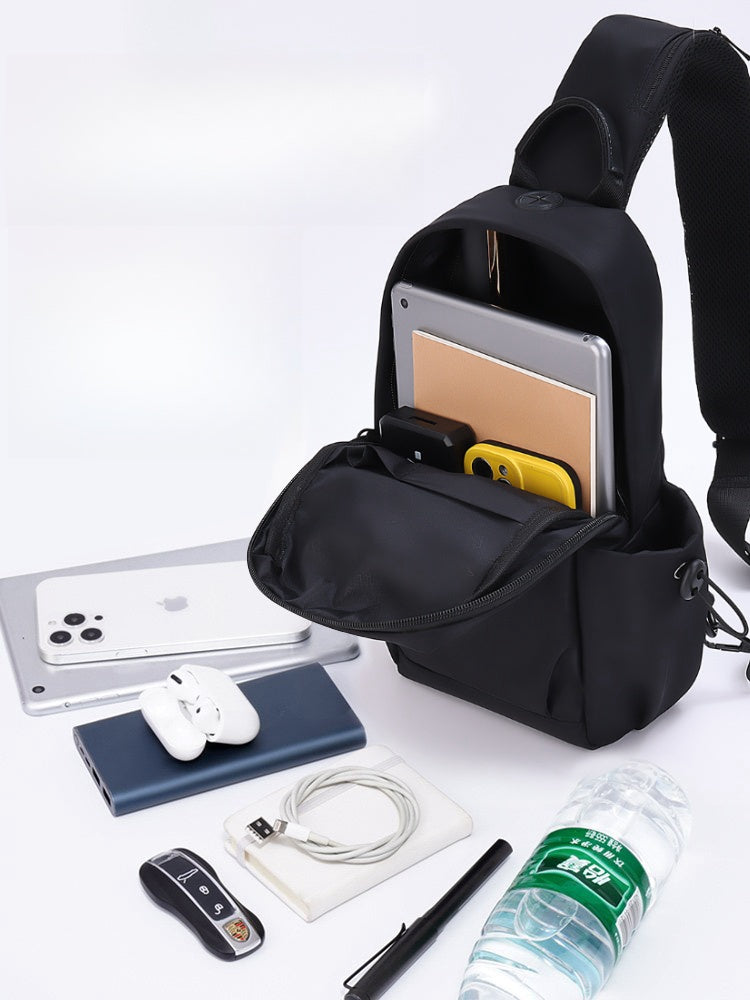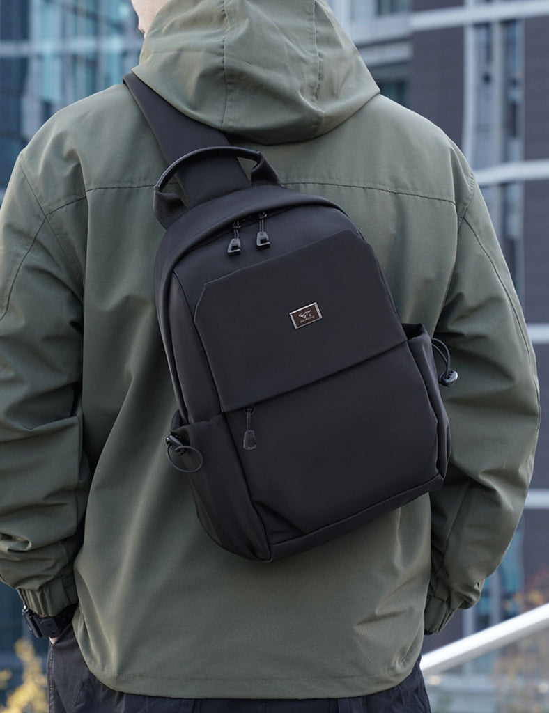 Constructed from durable Oxford fabric, this sling bag is not only robust but also waterproof, ensuring that your belongings stay dry and protected in all weather conditions. The material's strength guarantees long-lasting use, making it a reliable companion for years to come. The sleek black color adds a touch of elegance, making it suitable for both casual and professional settings.