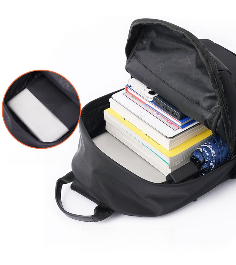 Slots: 1 zipper main slot, 2 side pockets, 1 outside zip slot,