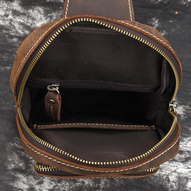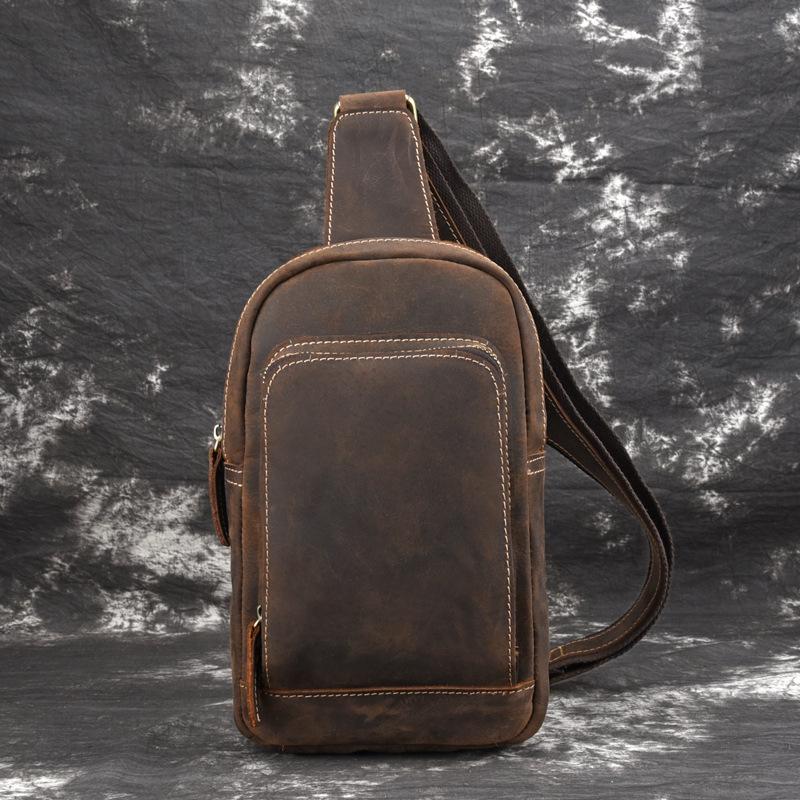 Style: Retro Brown Leather Men's Brown Sling Bag Coffee Chest Bag One Shoulder Backpack For Men