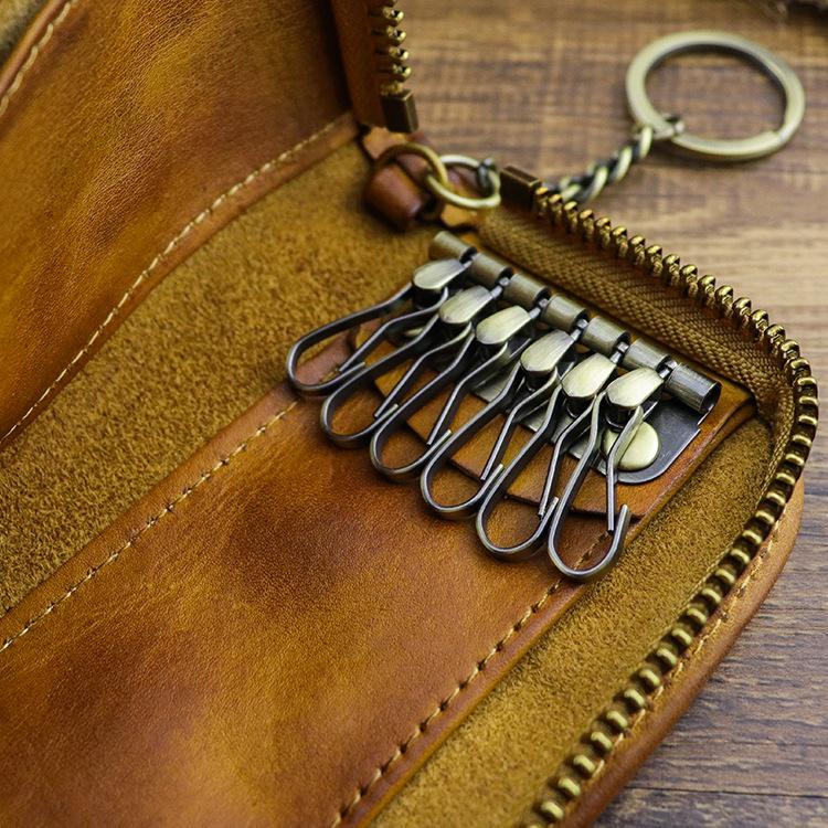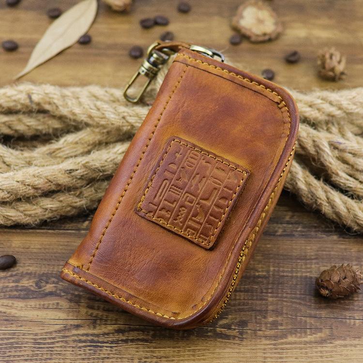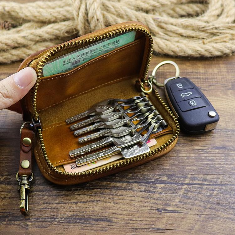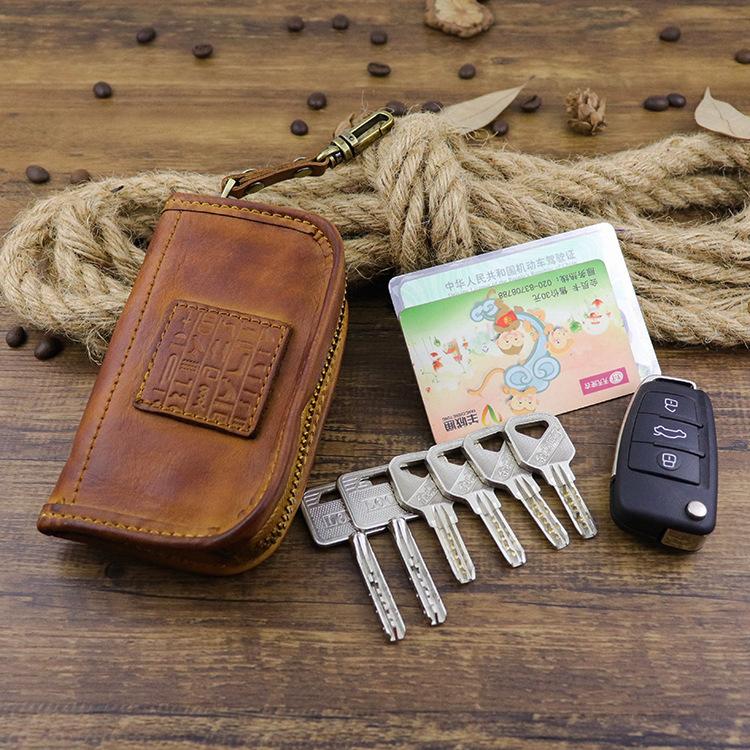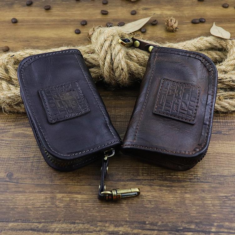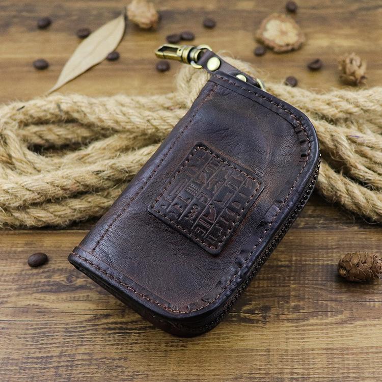 Style: Retro Dark Brown Leather Men's Large Key Wallet Key Case Car Car Key Holder For Men