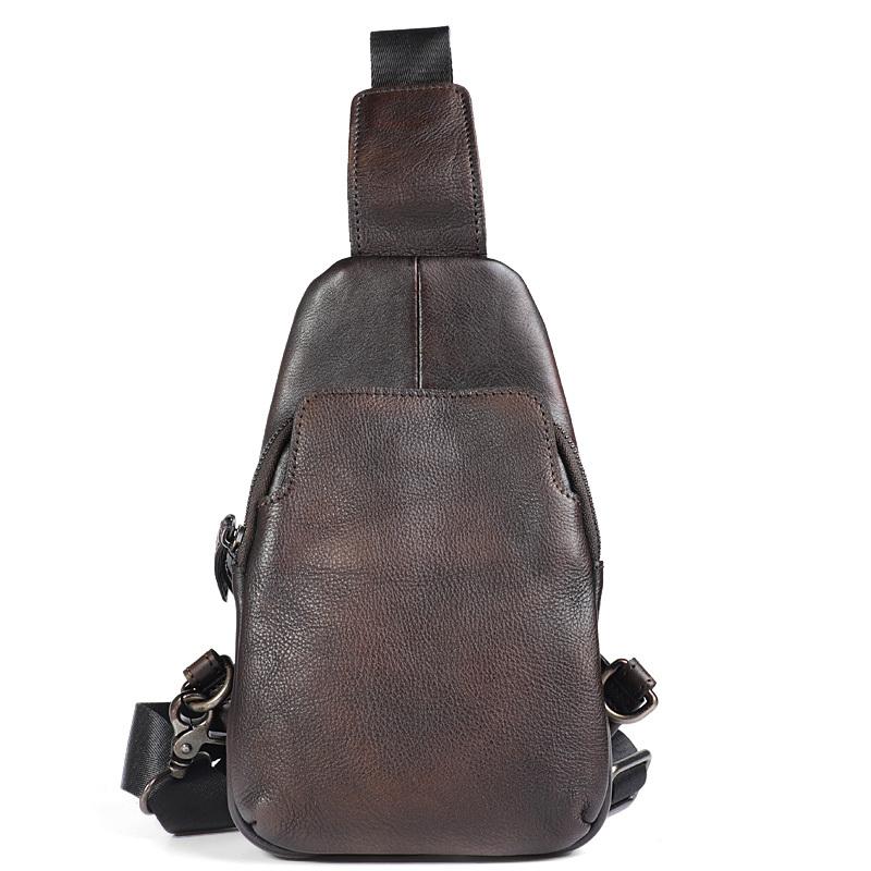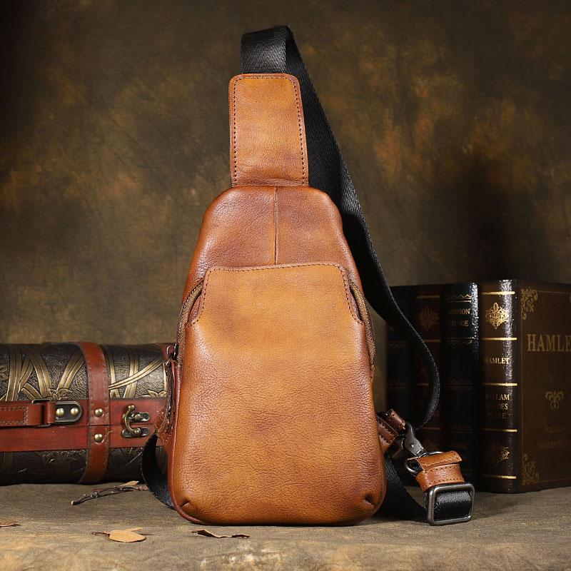 Design: Retro Handmade Brown Leather Mens Sling Bag Sling Shoulder Bag Chest Bag for men