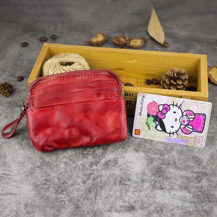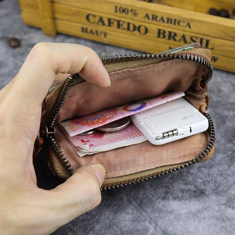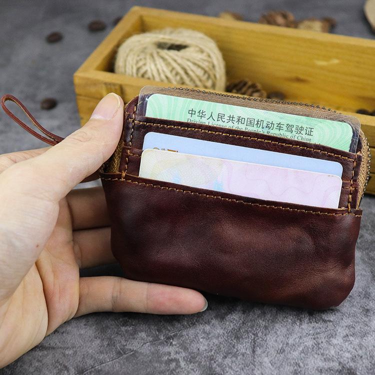 Design: Vintage Brown Mens Leather Small Card Wallet Front Pocket Wallet Change Wallet for Men