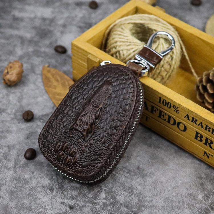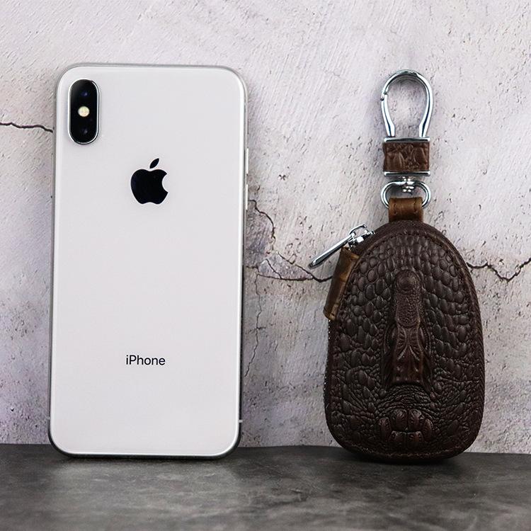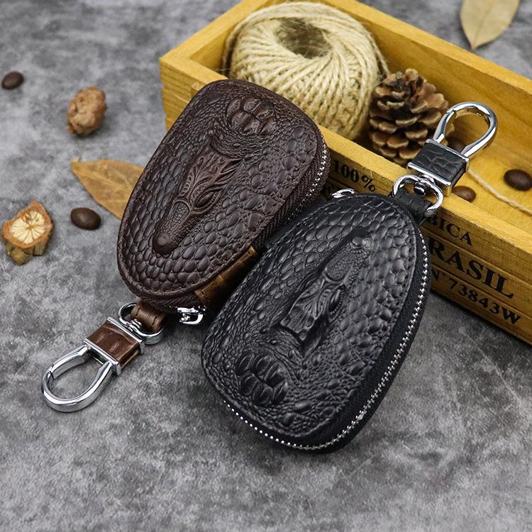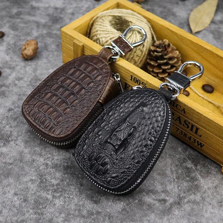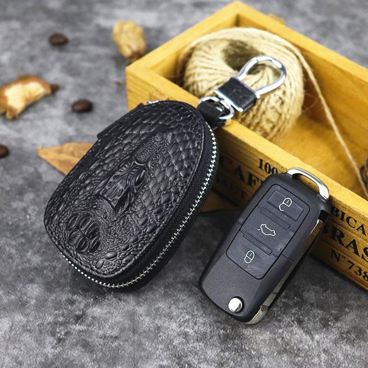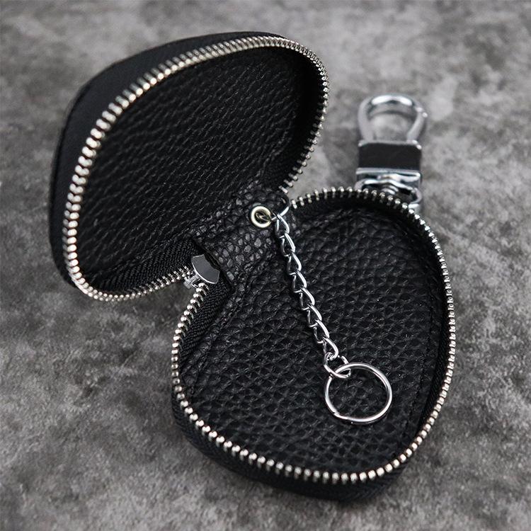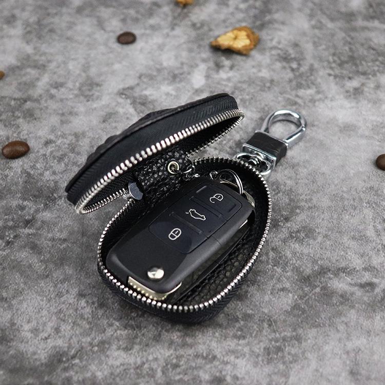 Design: Black Leather Men's Key Wallet Zipper Car Key Case Car Holder For Men