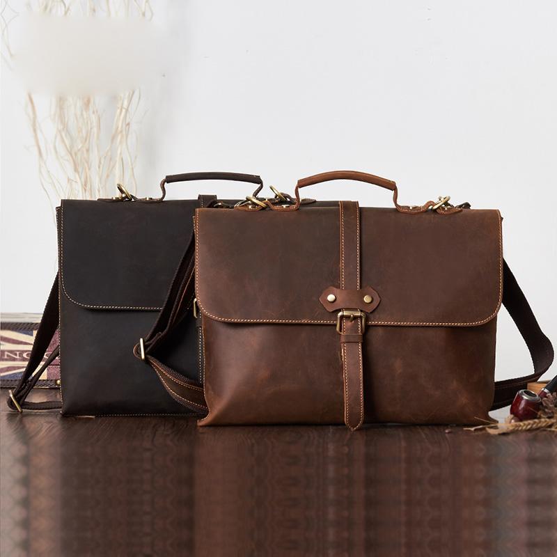 Design: Vintage LEATHER MENS BRIEFCASE BUSINESS Bag VINTAGE 14inch Laptop SHOULDER BAG HANDBAGS FOR MEN