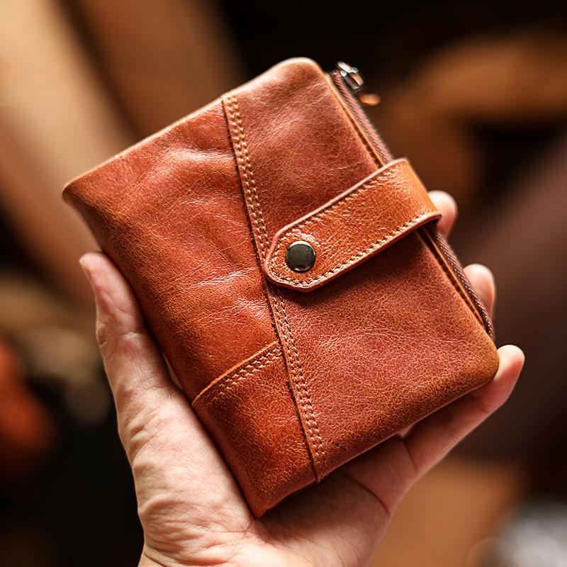 Design: Cool Brown Leather Mens billfold Wallet Bifold SMall Wallet Black Front Pocket Wallet For Men