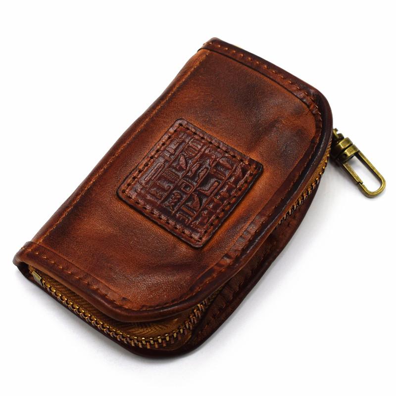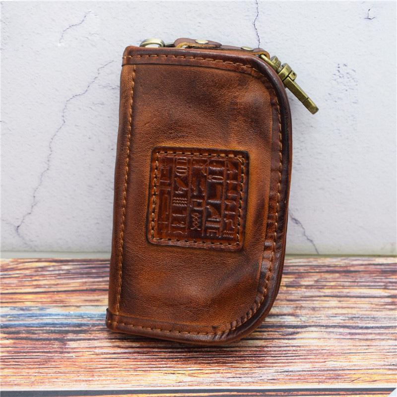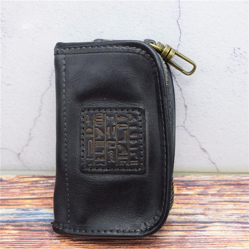 Design: Vintage Mens LEATHER Car Key Holder Zipper Key Wallet Key Holder for Men