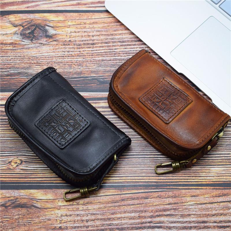 Style: Vintage Mens LEATHER Car Key Holder Zipper Key Wallet Key Holder for Men