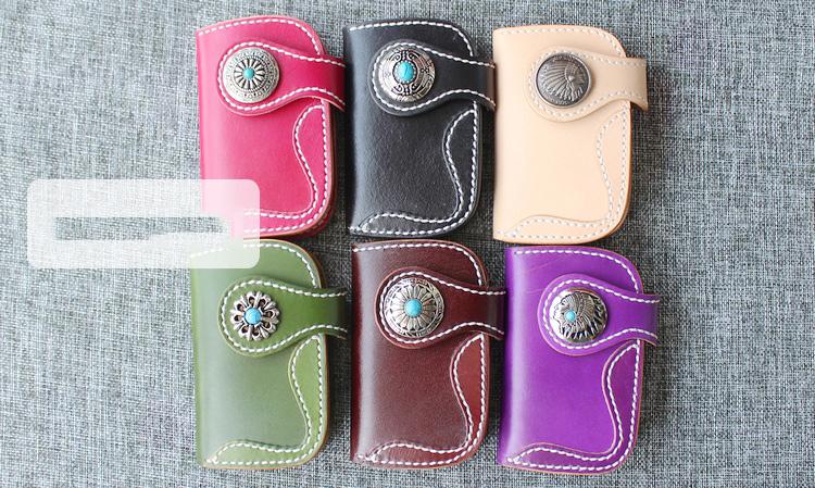Design: Handmade Green Leather Mens Womens Key Holders Key Wallets Coffee Card Key Wallet For Men