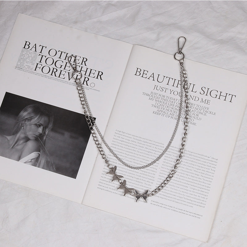 Design: Silver Womens Double Layers Wallet Chain With Butterflys Jeans Chain Cute Pants Chain For Women