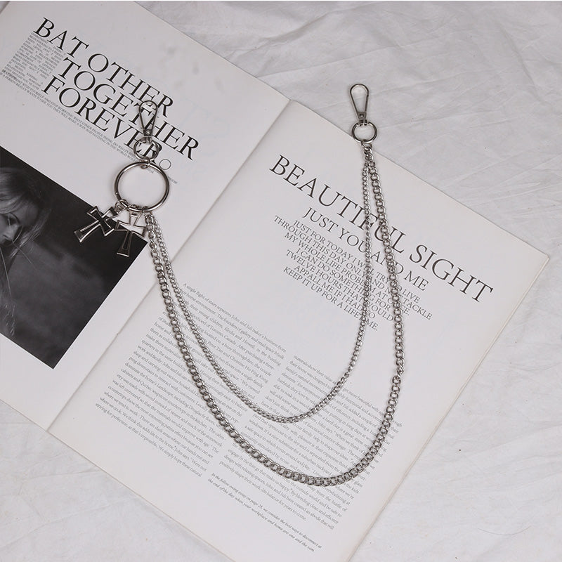 Style: Silver Womens Double Layers Wallet Chain With Cross Charm Jeans Chain Cute Pants Chai