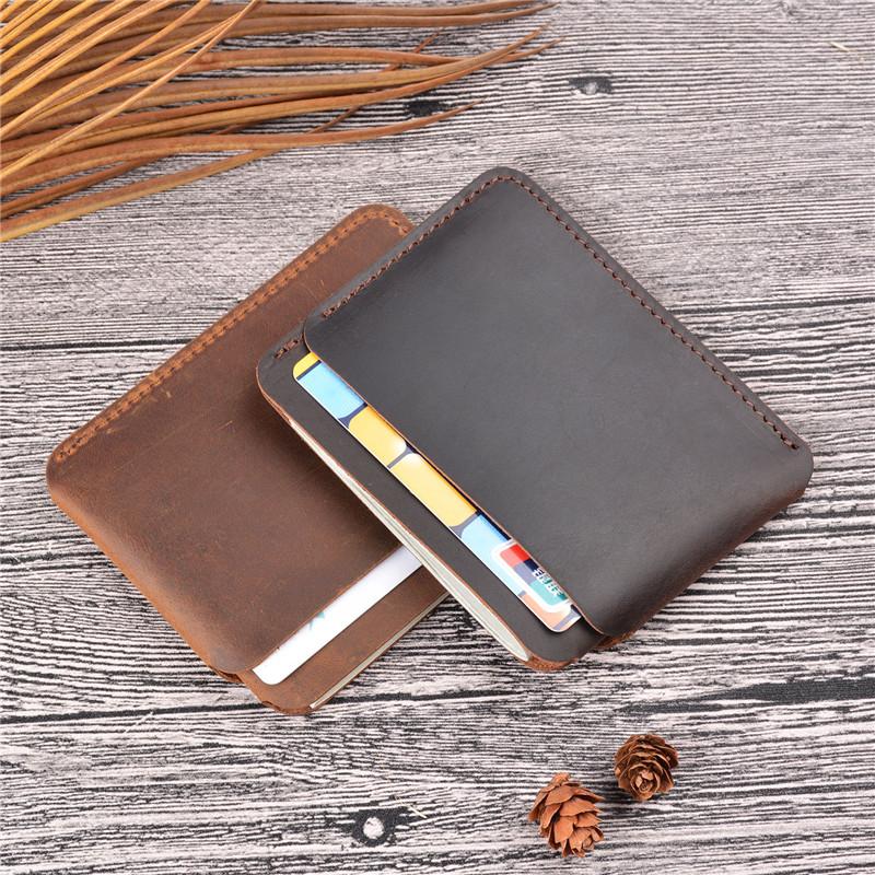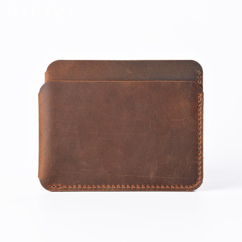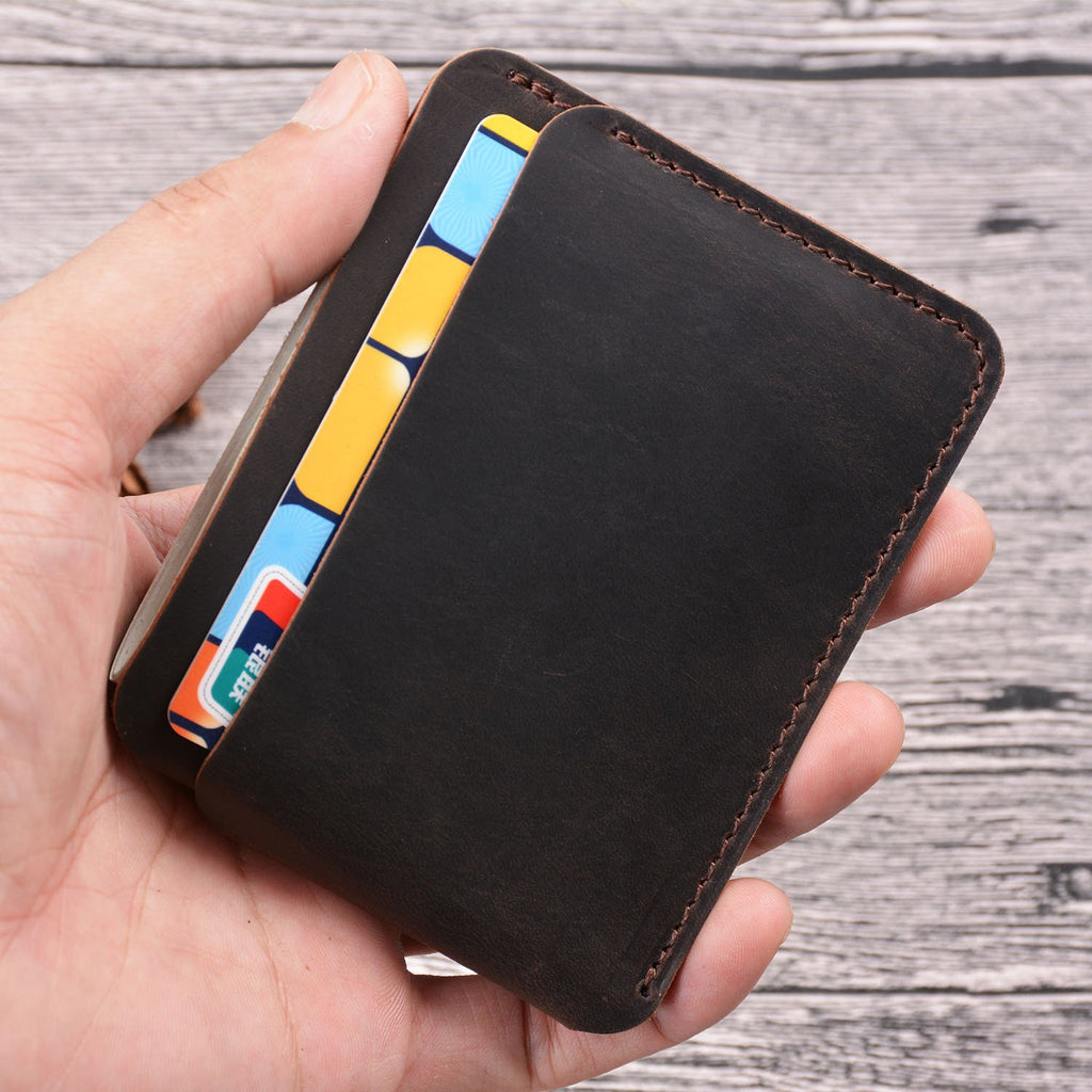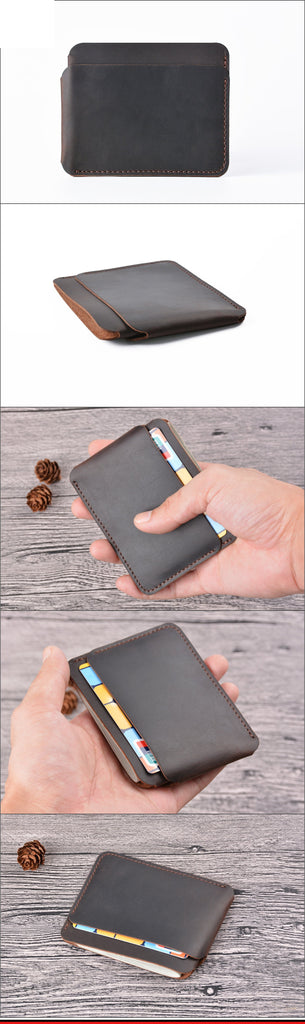 Design: Vintage Brown Leather Men's Front Pocket Wallet Black Slim Card Short Wallet Small Wallet For Men