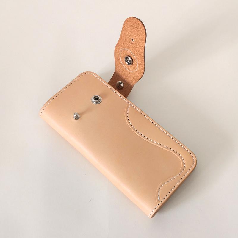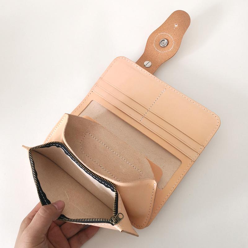 Design: Simple Japanese-Style Mens Leather Long Wallets Light Beige Bifold Card Wallet For Men