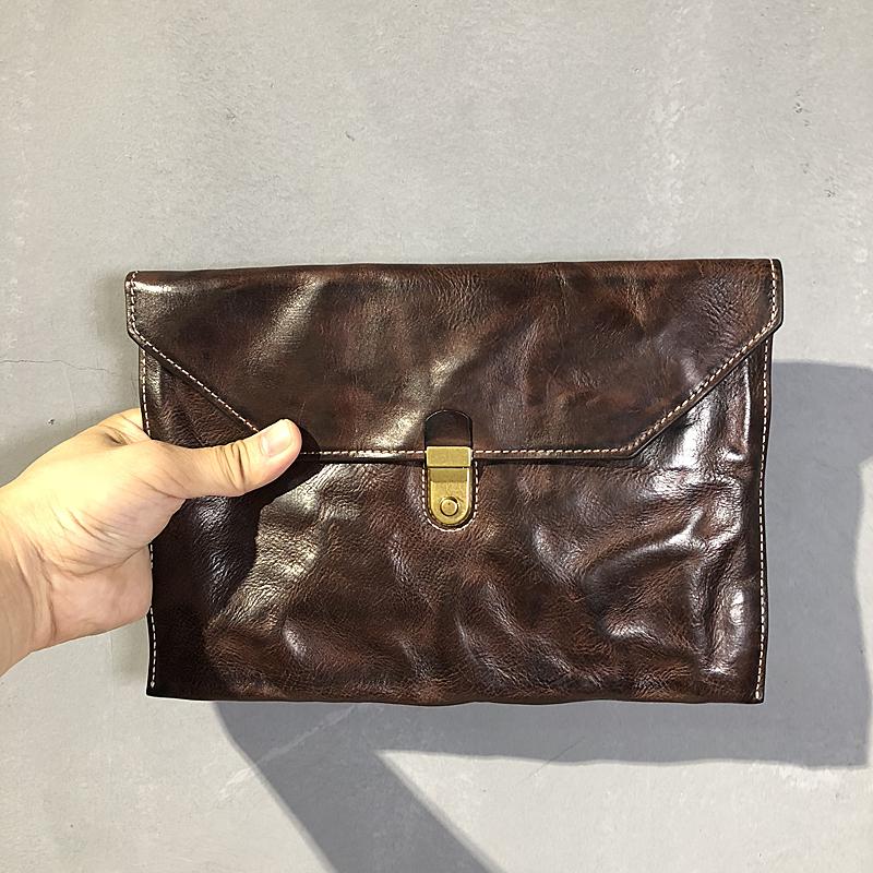 Style: Simple Leather Black Mens 10 inches Clutch Bag Zipper Womens Brown Clutch Wallet Hand Bag for Men
