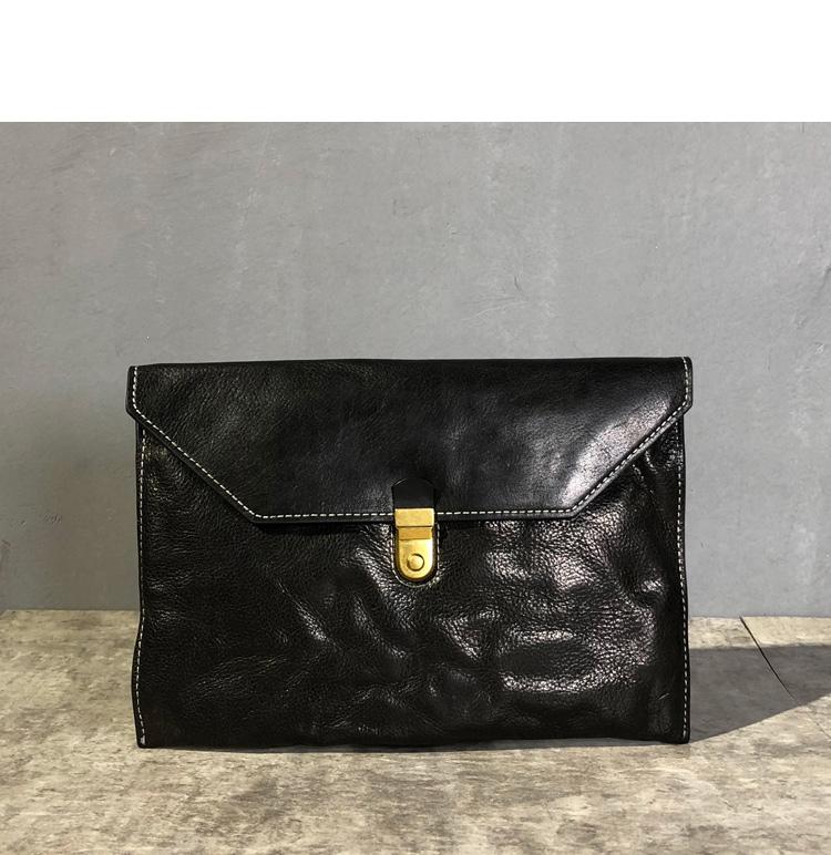 Design: Simple Leather Black Mens 10 inches Clutch Bag Zipper Womens Brown Clutch Wallet Hand Bag for Men