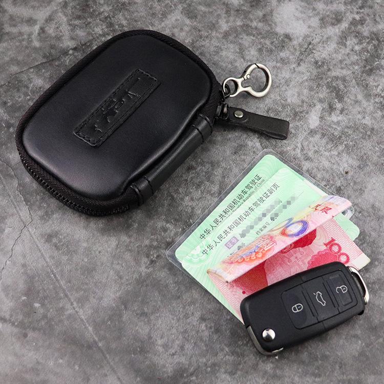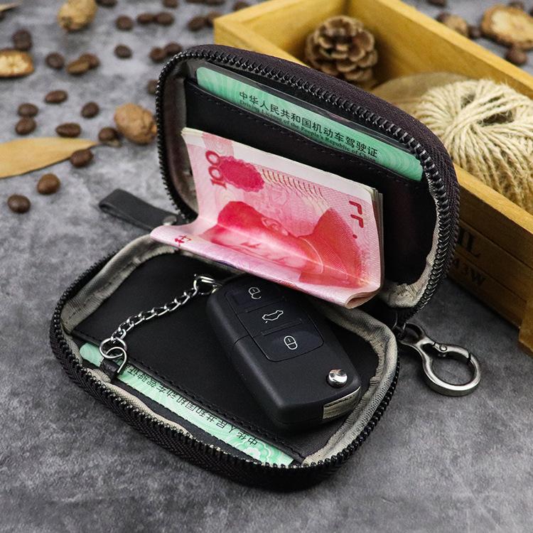 Style: Cool Black Leather Men's Key Wallet Zipper Car Key Holder Card Wallet For Men