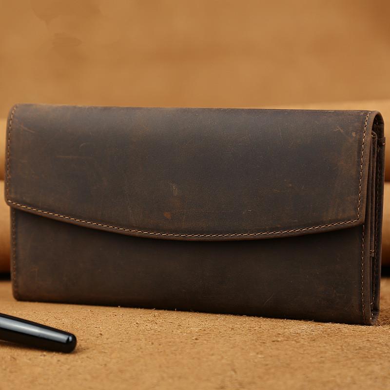 Style: Cool Leather Wallet Men's Trifold Long Wallet Vintage Long Wallet For Men