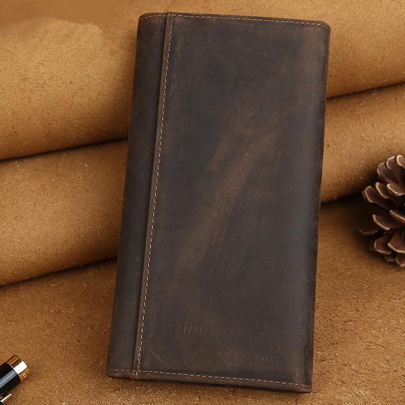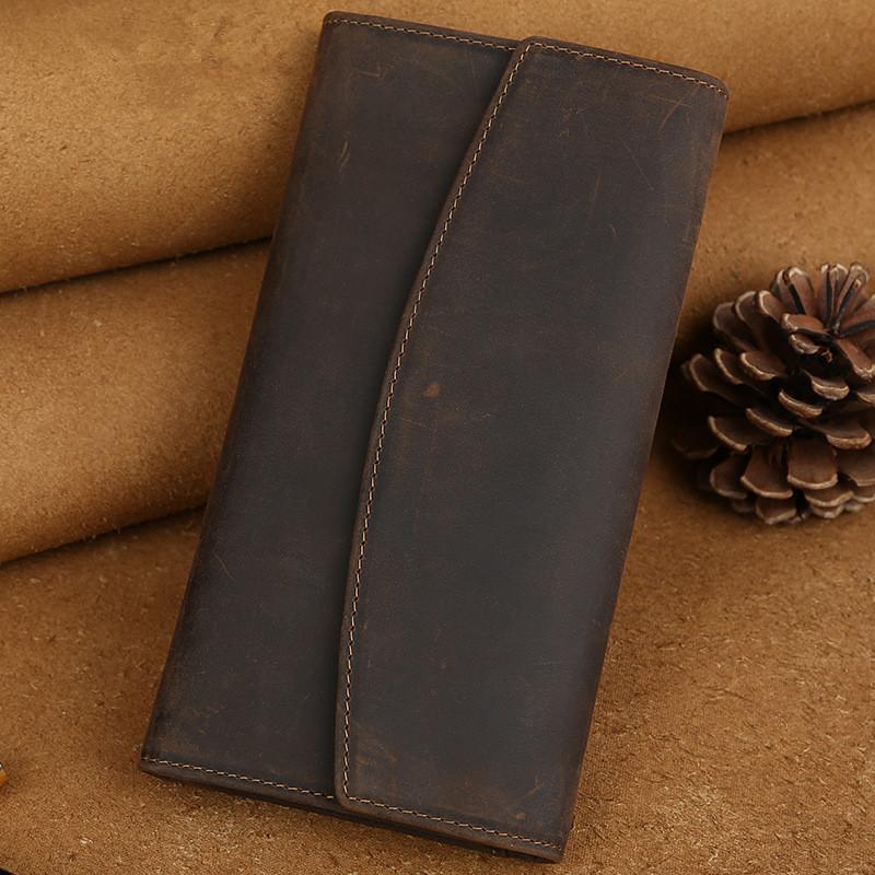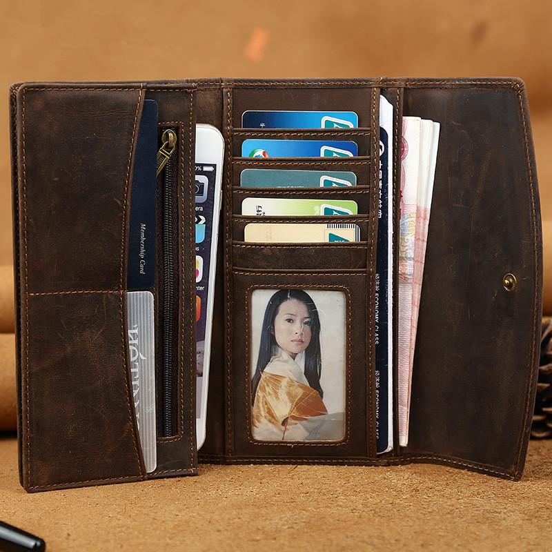 Design: Cool Leather Wallet Men's Trifold Long Wallet Vintage Long Wallet For Men