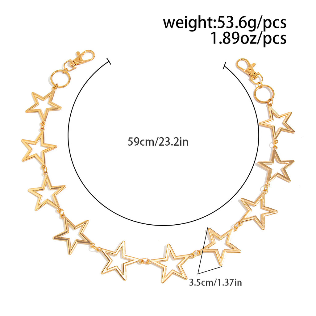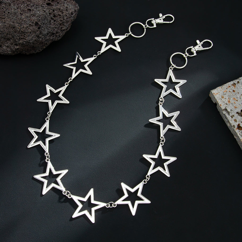 Introduce a touch of celestial edge to your style with the Beaded Wallet Chain, a detailed and versatile accessory that balances delicate artistry with bold presence. This unique Star Wallet Chain spans 52cm in length and is crafted from a series of intricate cut-out star charms, alloy beads, and small connecting rings. From afar, the chain presents a sleek metallic look, but up close, the detailed star cut-outs and textured beads reveal a layer of craftsmanship and personality. This eye-catching Ball Pants Chain is designed for those who appreciate subtle symbolism, layered design, and a versatile accessory that works across subcultures and everyday looks.