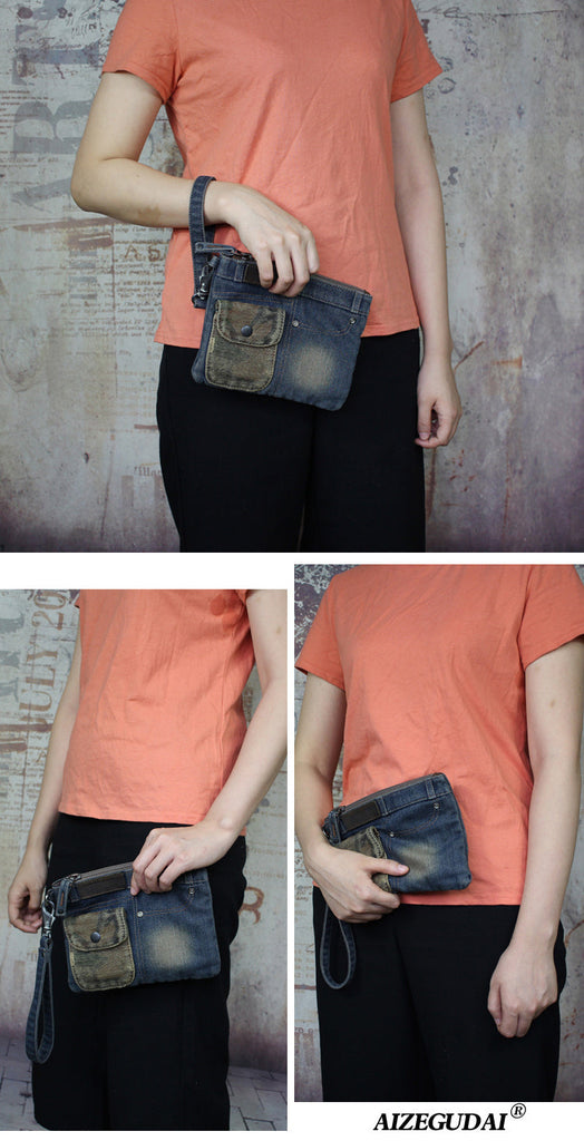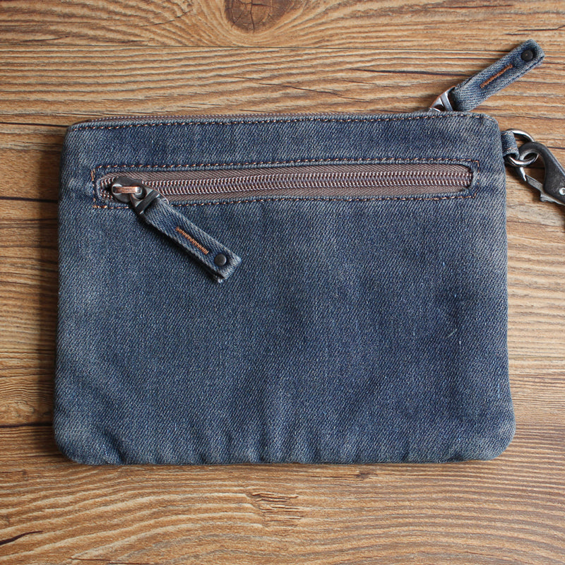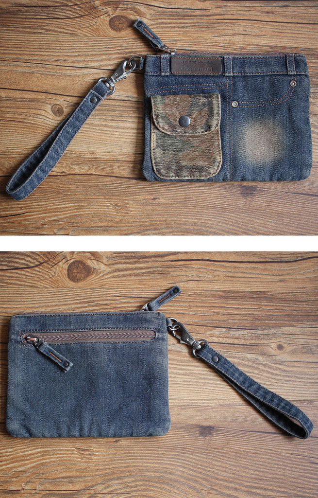 Whether you're strolling through the city or heading out for a night on the town, this Denim Wristlet Bag effortlessly complements your style. Its vintage-inspired design and thoughtful features make it a standout accessory, allowing you to make a bold fashion statement while keeping your essentials organized in a distinctly denim way. Embrace the spirit of contemporary fashion with this unique and versatile denim wristlet.