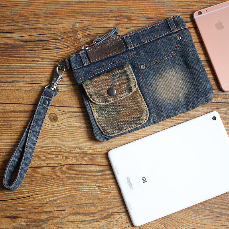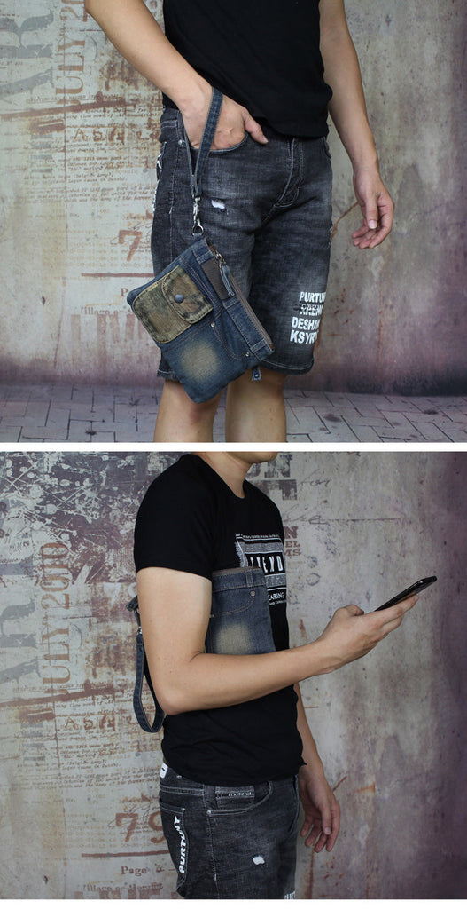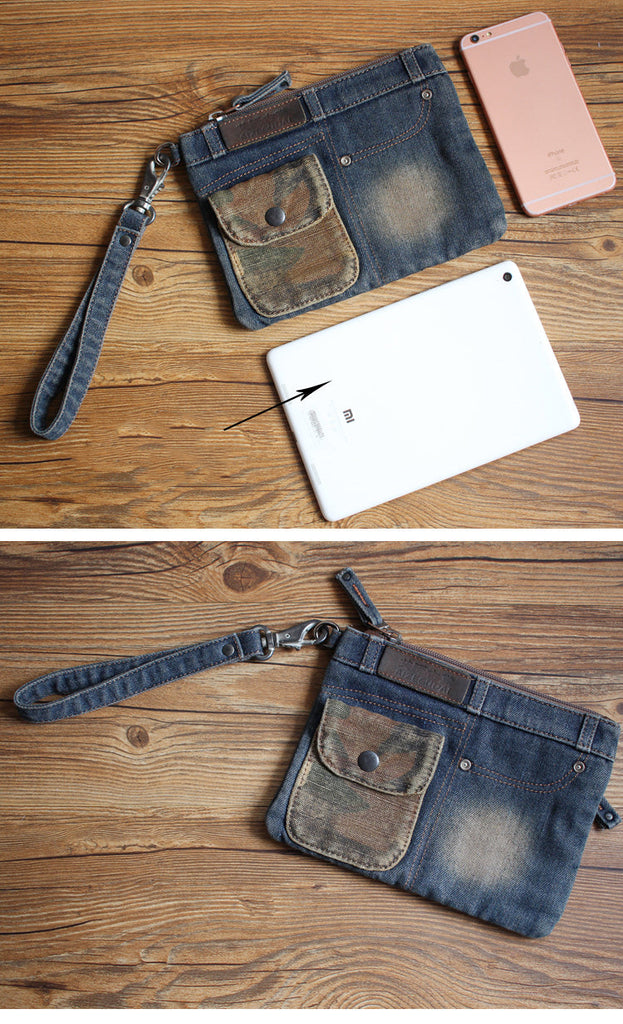 Style: Cool Denim Blue Mens Envelope Bag Clutch Jean Wristlet Bag Hand Bag For Men