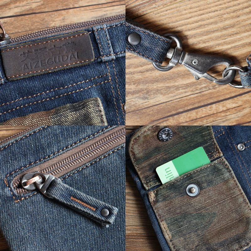 Design: Cool Denim Blue Mens Envelope Bag Clutch Jean Wristlet Bag Hand Bag For Men