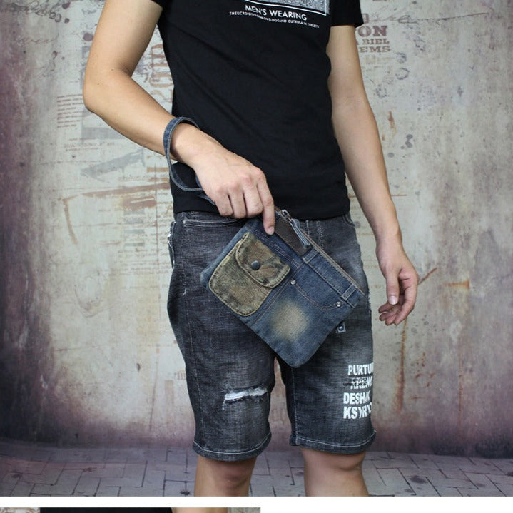 Elevate your accessory game with our Denim Wristlet Bag, a fashion-forward blend of denim shorts' comfort and vintage flair. Tailored for both men and women, this wristlet bag is a stylish ode to classic denim, available in two timeless colors – black and blue.