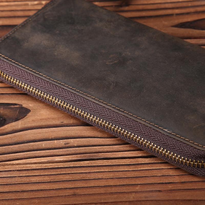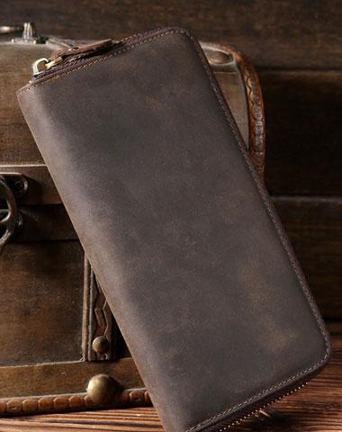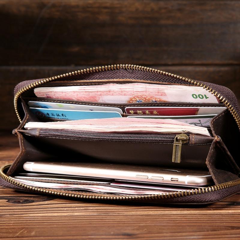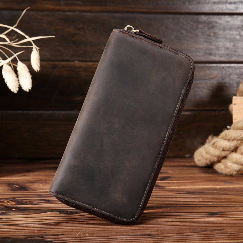 Design: Vintage Leather Mens Long Wallet Zipper Clutch Wallet For Men