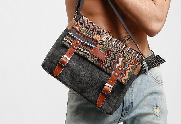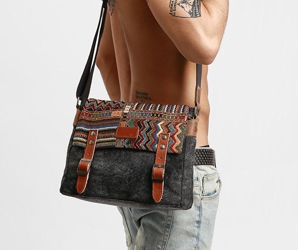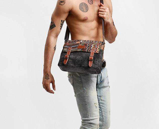 Design: Vintage Mens Canvas Gray Cool Side Bag Messenger Bag Shoulder Bag for Men
