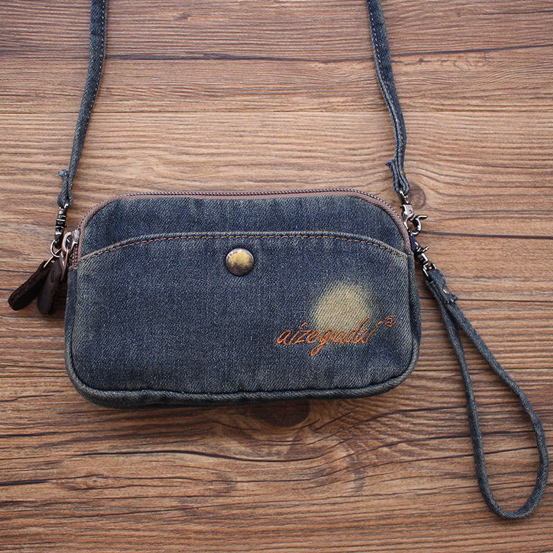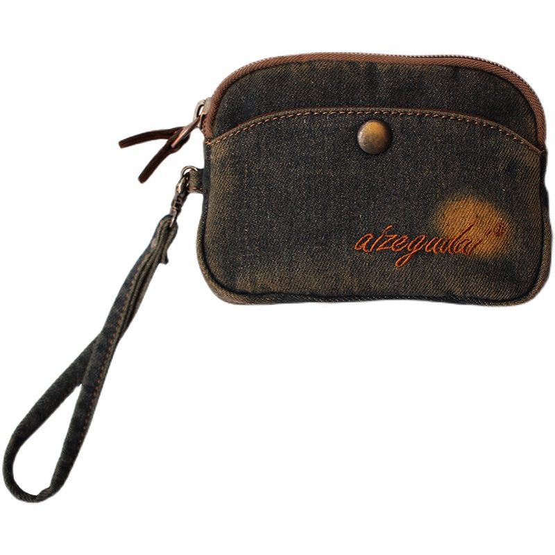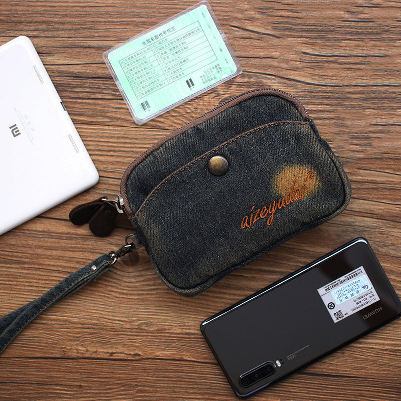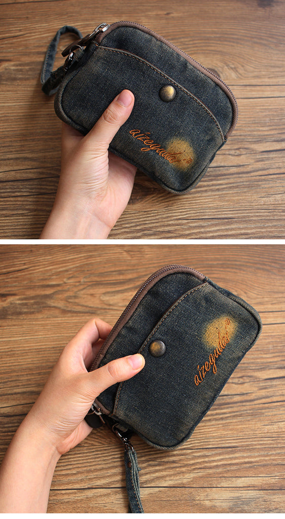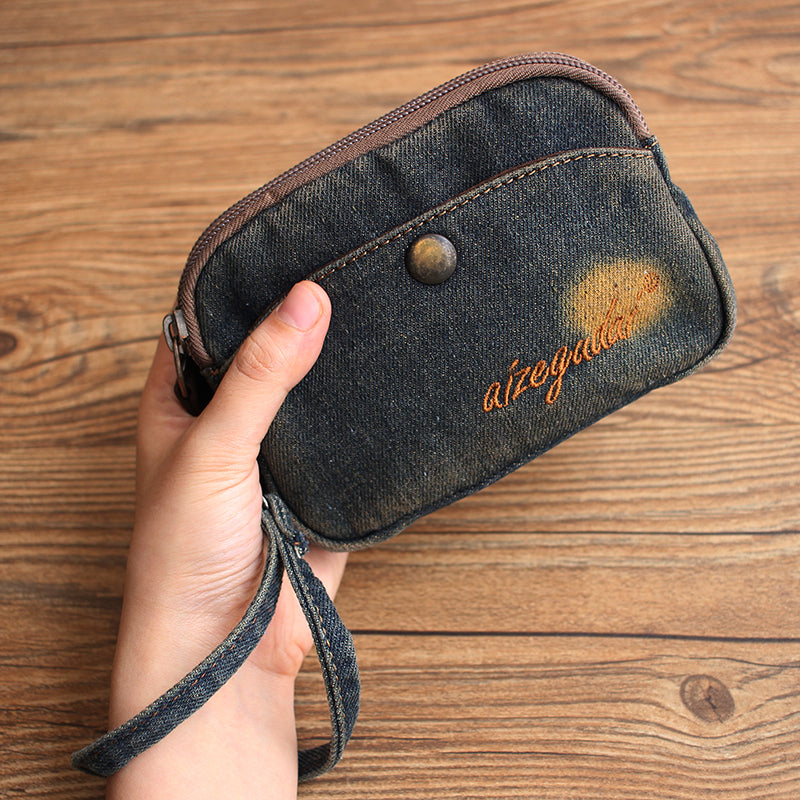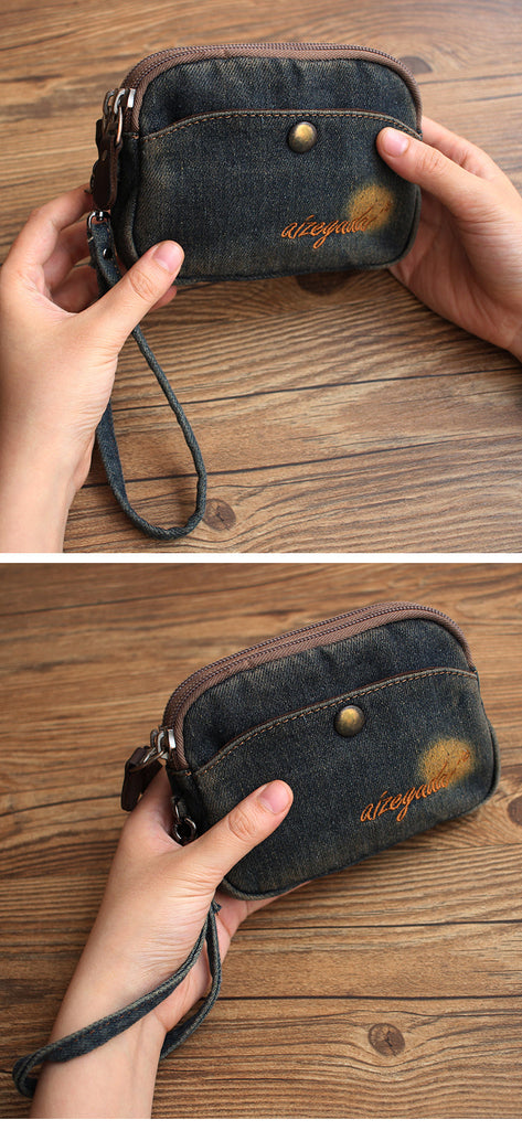 Style: Vintage Womens Denim Wristlet Card Purse Denim Wristlet Coin Key Wallet for Women