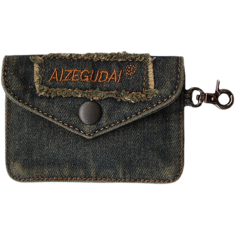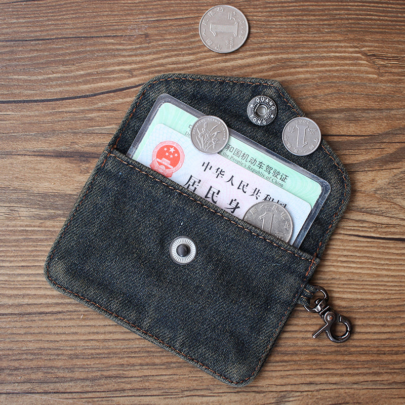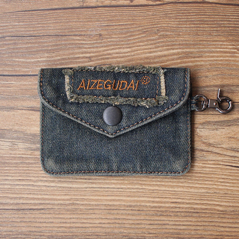 Design: Vintage Womens Denim Mini Card Holder with Lanyard Denim Small Card Coin Purse for Women