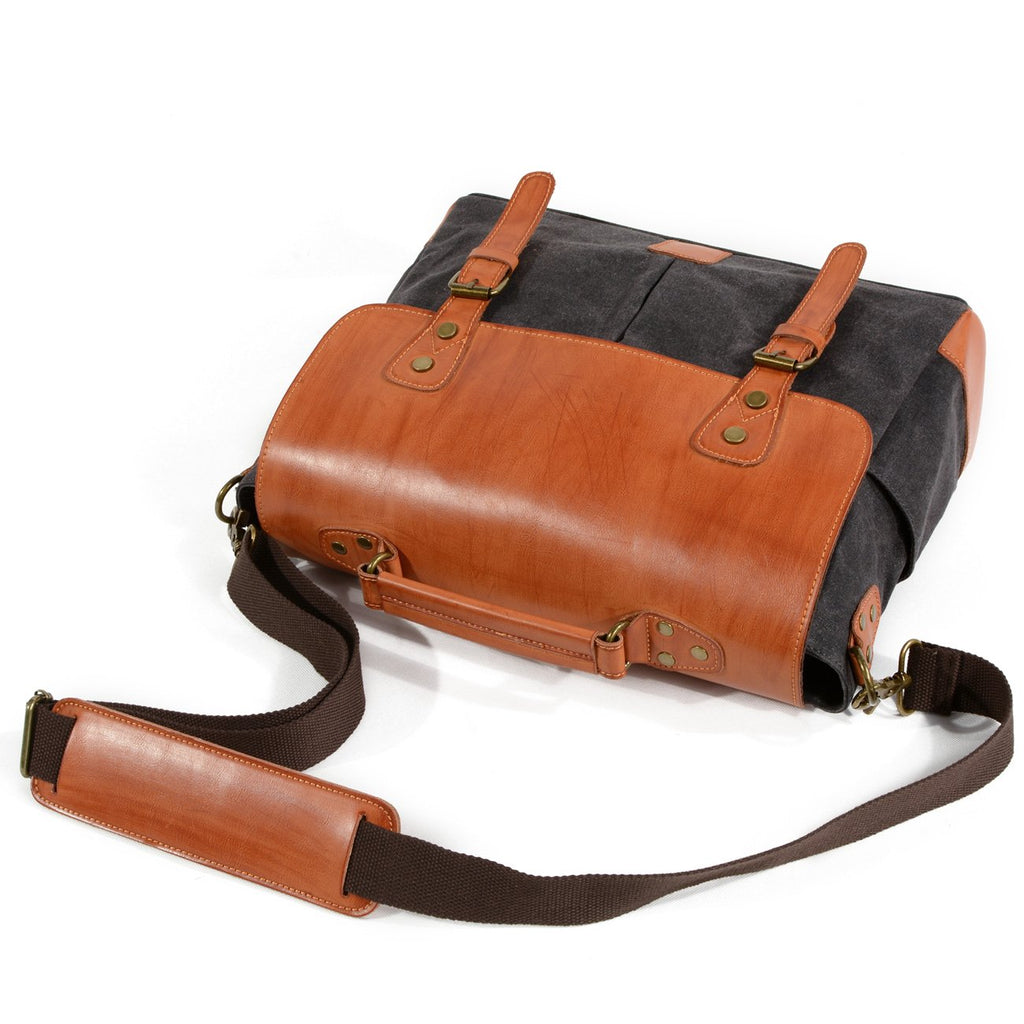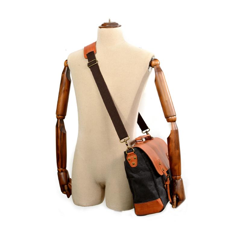 Style: Waxed Canvas Leather Mens Retro Multi-function Handbag Messenger Bag Computer Bag For Men