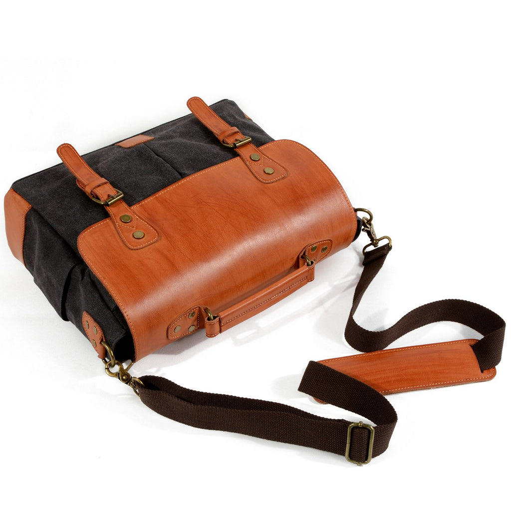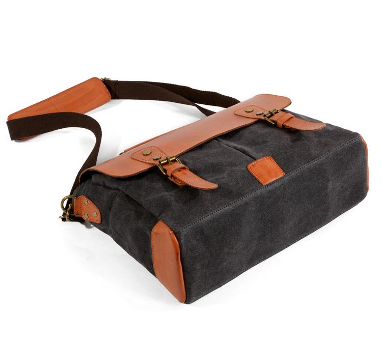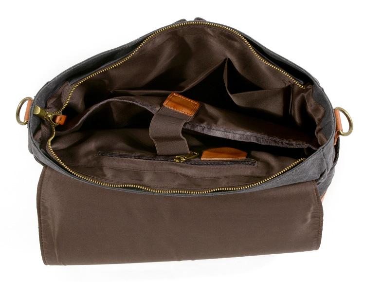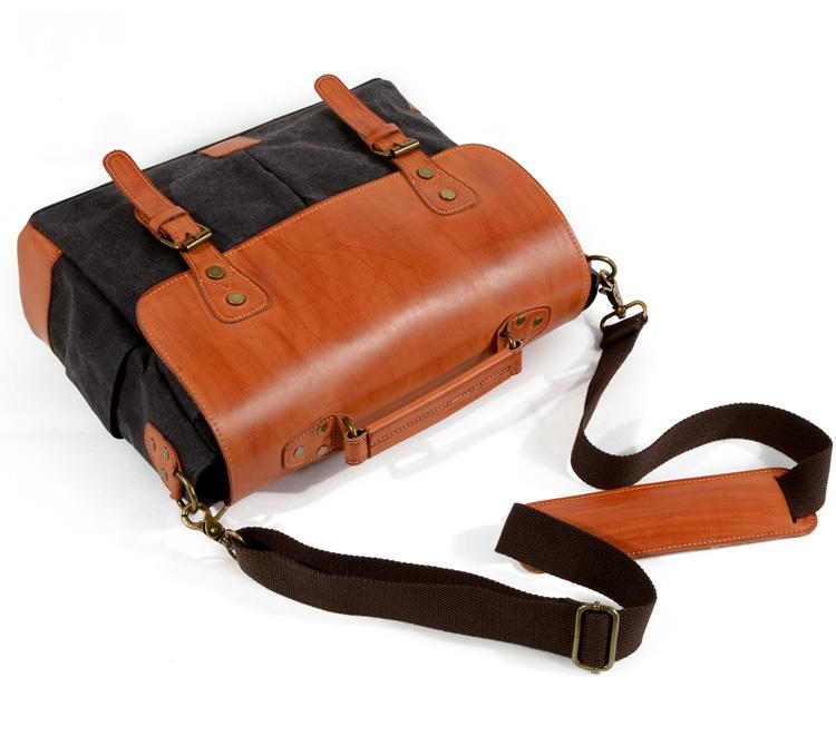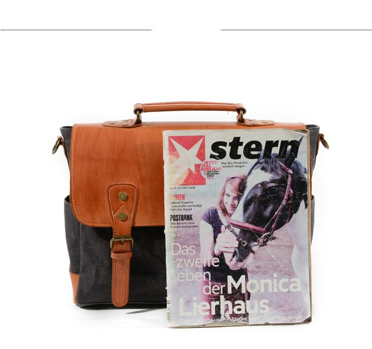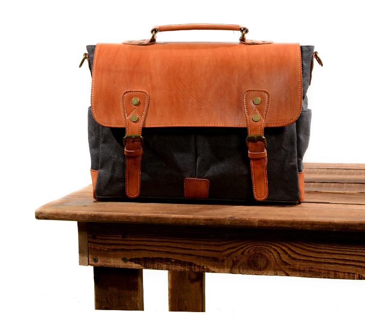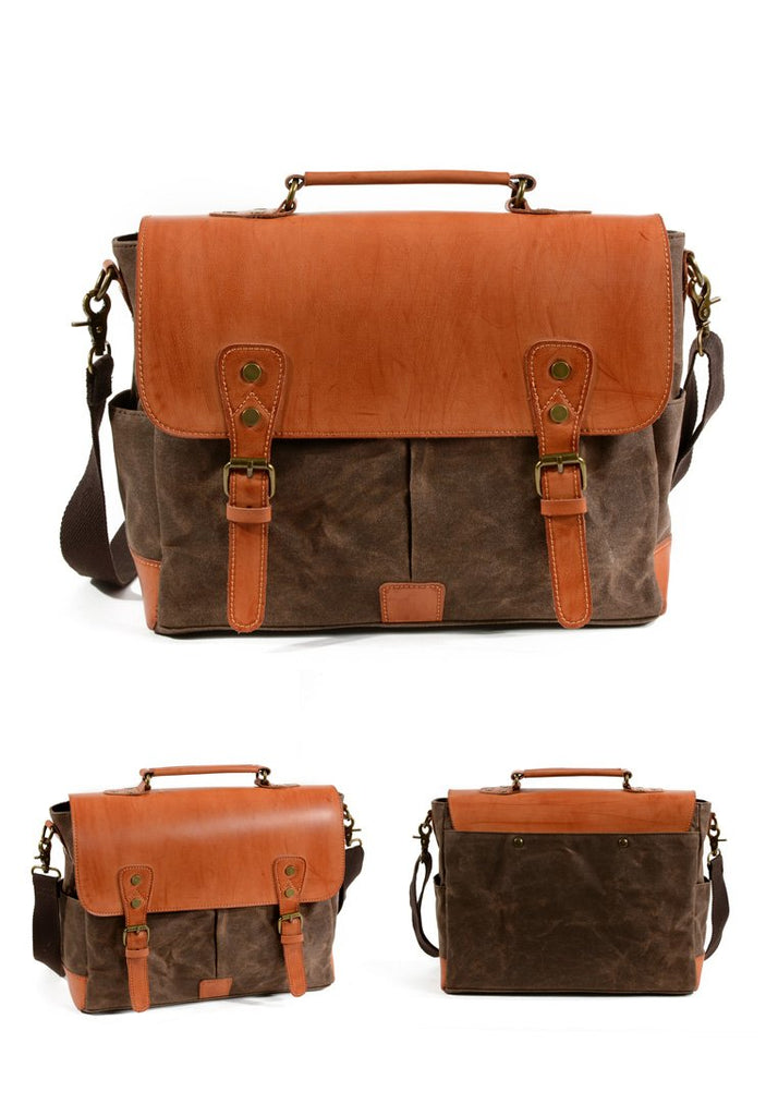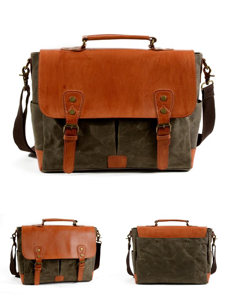 Design: Waxed Canvas Leather Mens Retro Multi-function Handbag Messenger Bag Computer Bag For Men