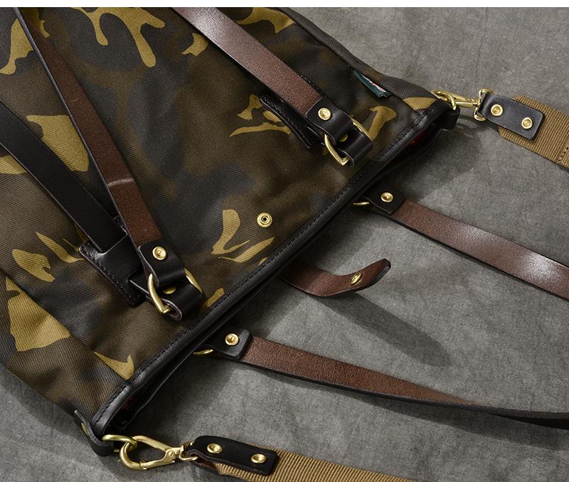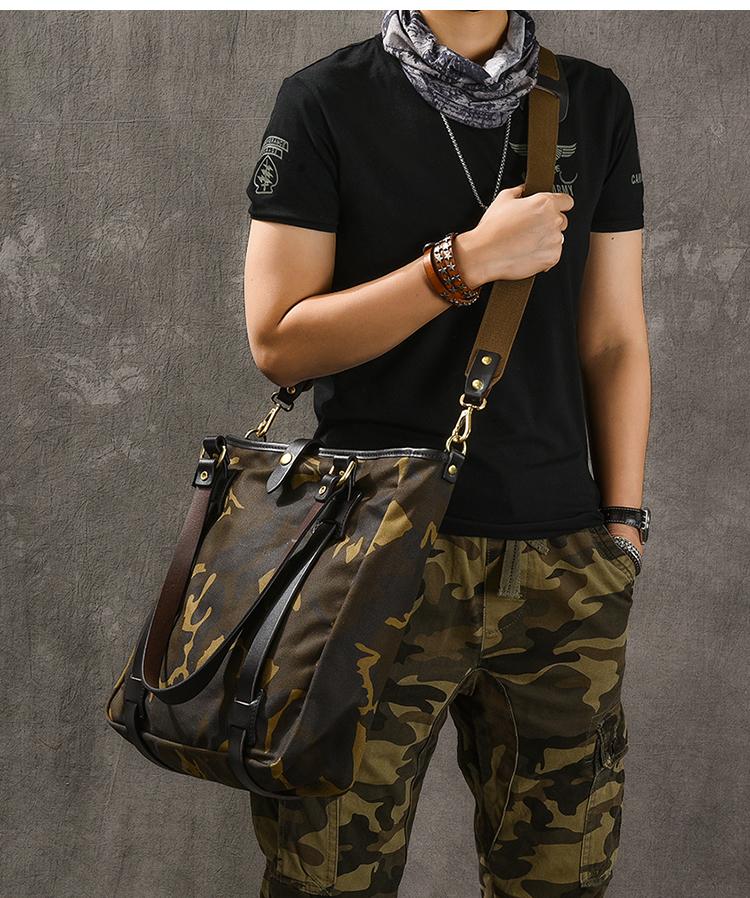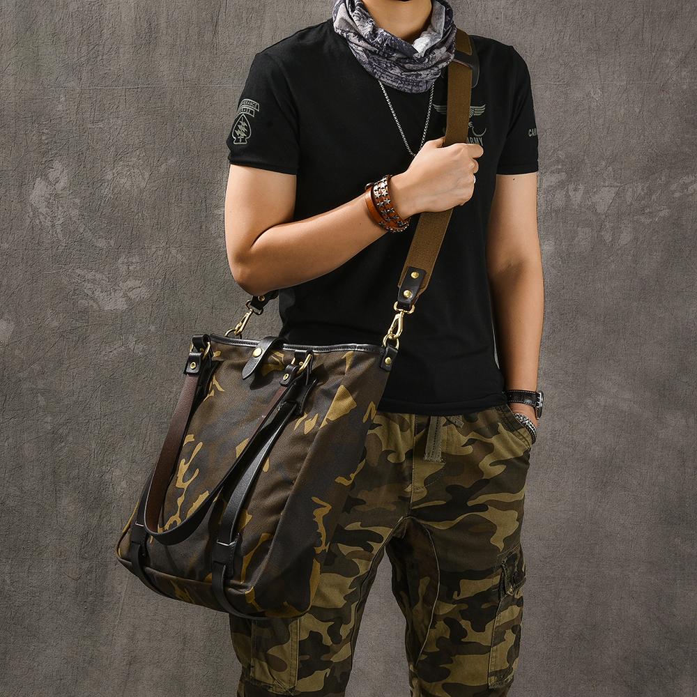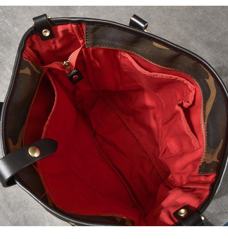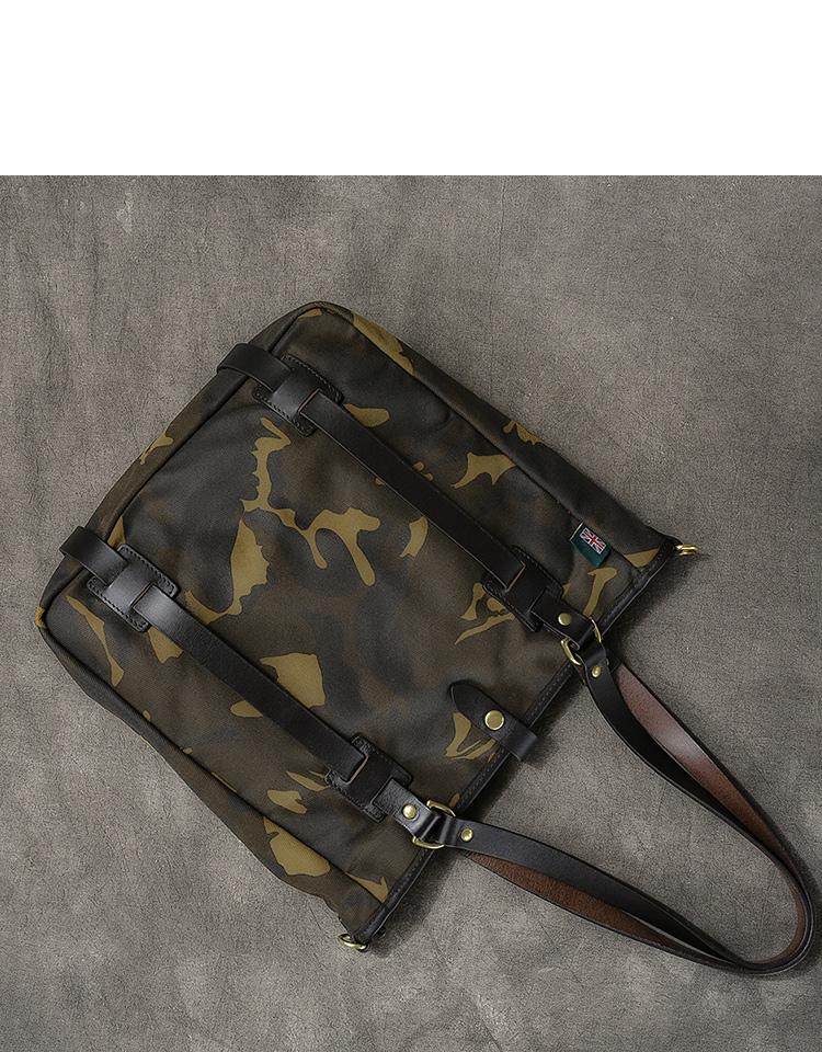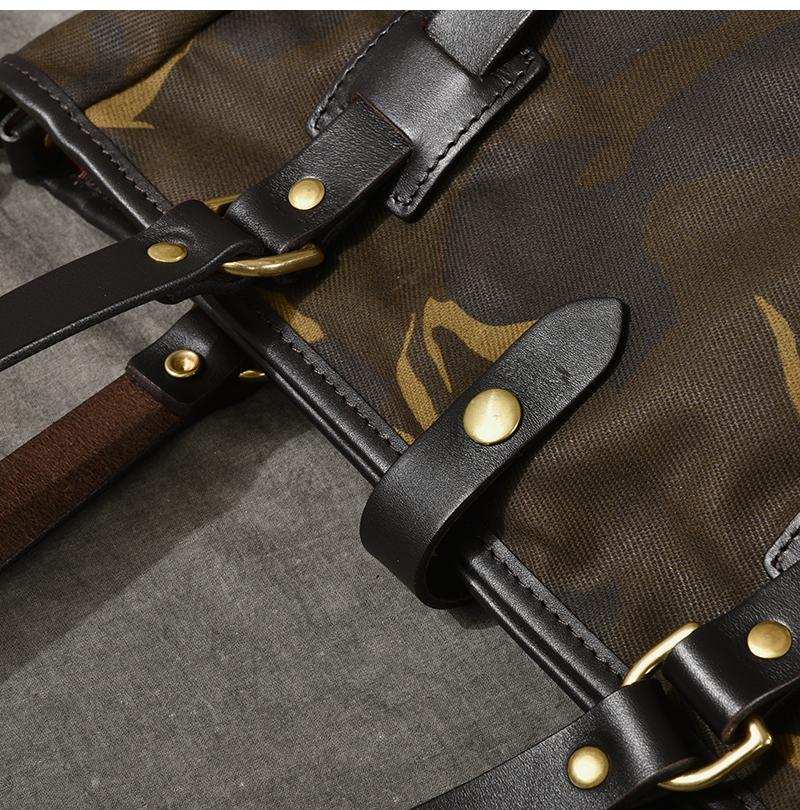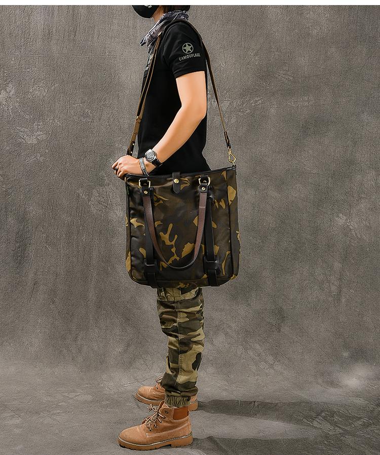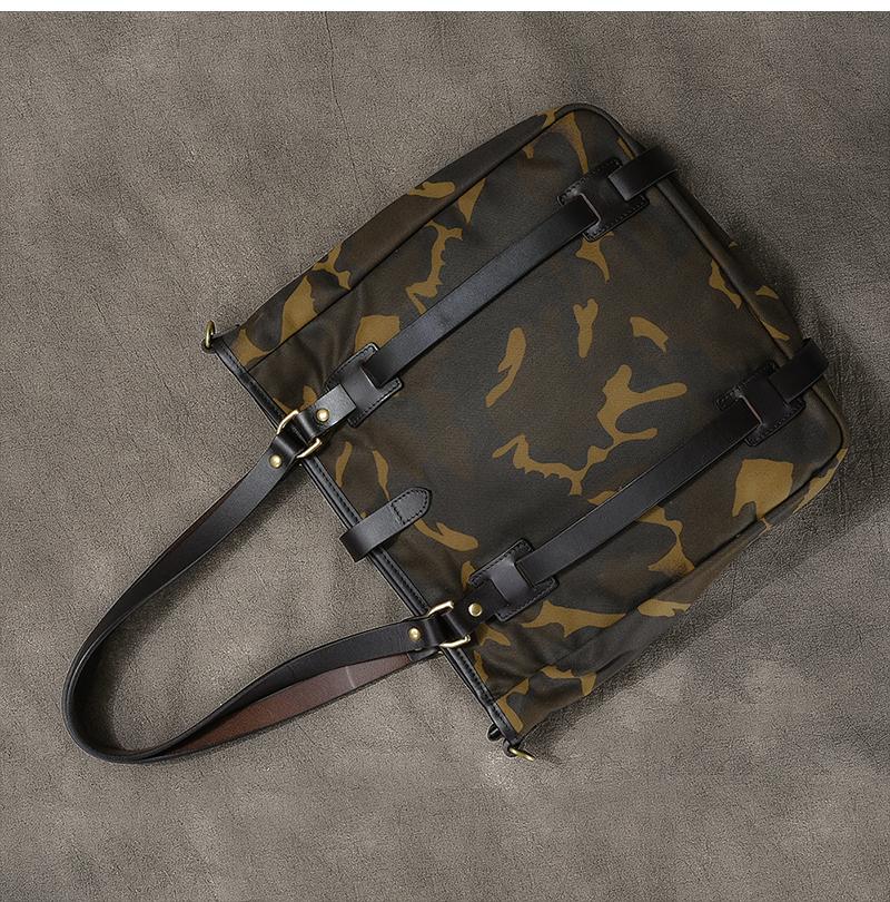 Design: Waxed Canvas Leather Mens Womens 14'' Camouflage Tote Bag Handbag Tote Bag Shoulder Bag Tote Purse For Men